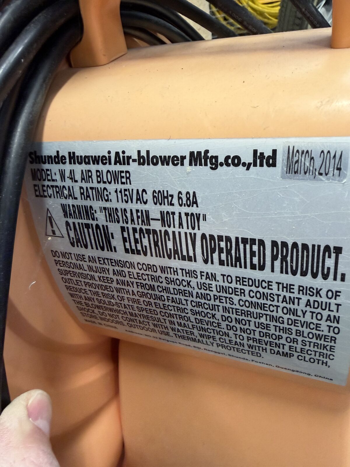 I’m selling a blower we have had for our bounce house waterside. It’s in great shape and works perfectly. It’s always been stored in our garage. It has a 5” diameter for the blower attachment. The only reason we’re selling it is because the water slide got a tear in it and had to be thrown away.
