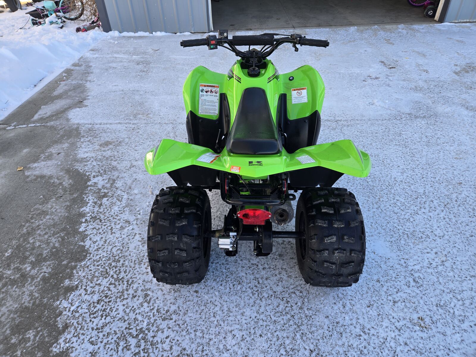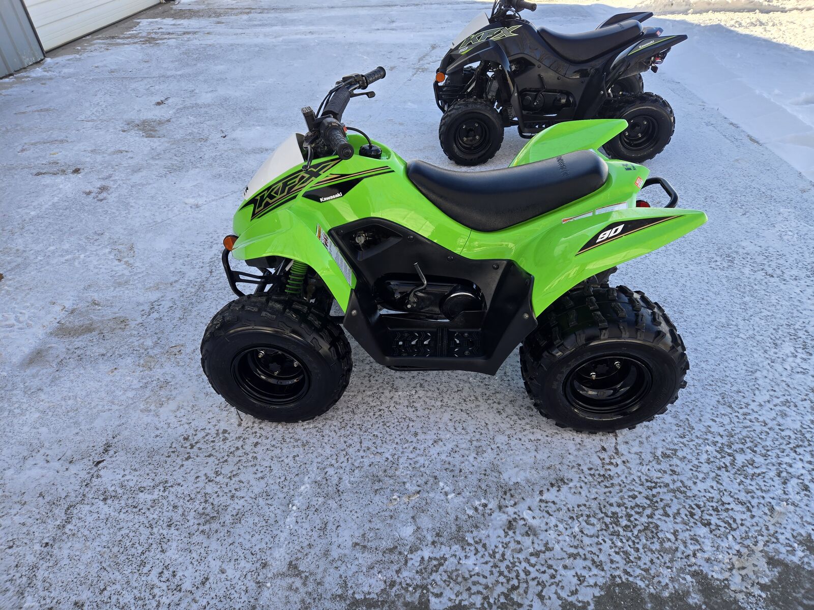 The kawasaki is a 2021 90, it runs great. It does have a broken tail light lens, but I have a new one ordered. Asking 1800 for it.