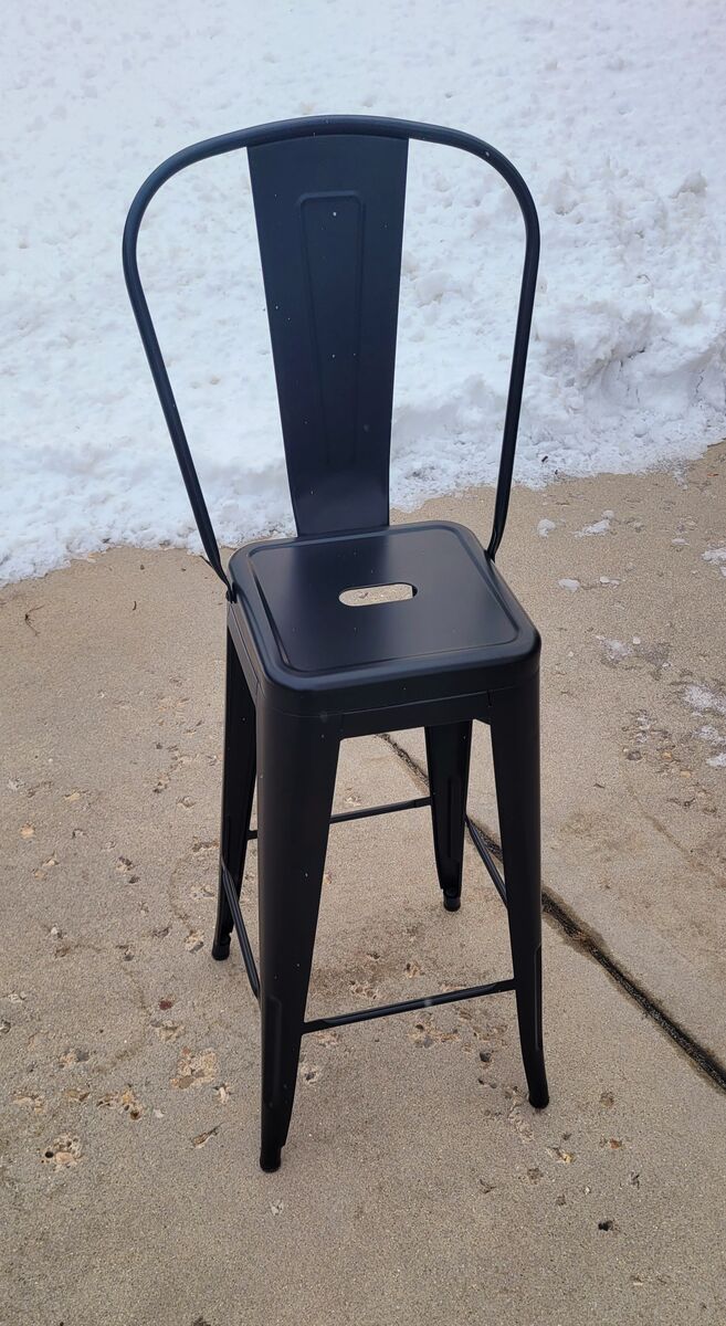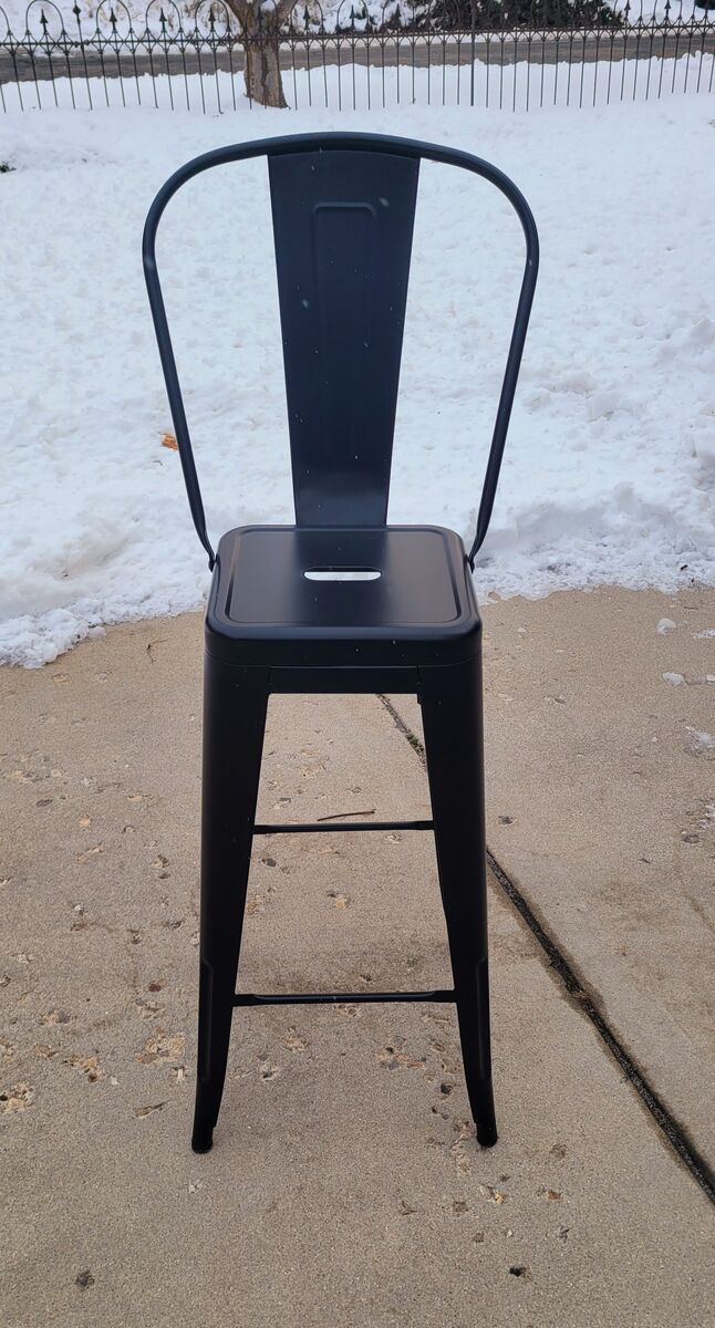 VenmoLike-new set of 4 black heavy-duty metal bar chairs with removable backrest.