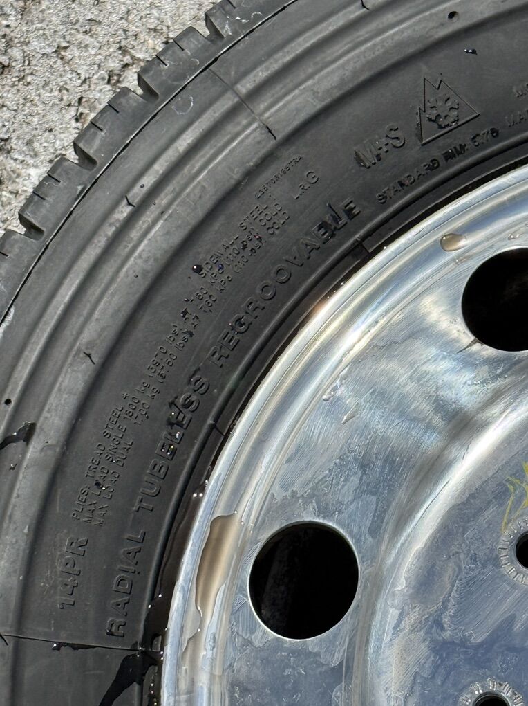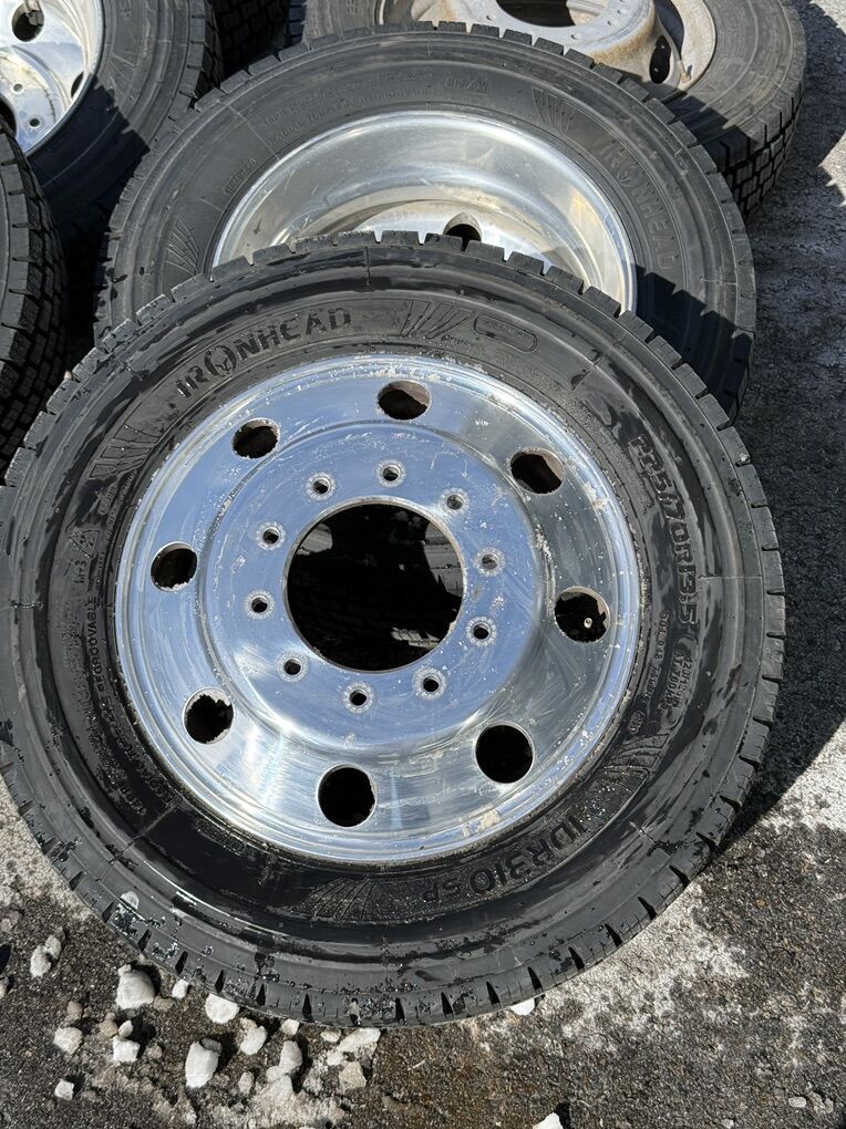 These came off of 2023 ford F550 that I just bought. The tires were brand new from dealer I purchased from, I put 1,000 miles on them then converted truck to super singles. So have no need for them. They handled amazingly in snow. 4 Outside wheels are Alcoa aluminum. 2 inside rears are steel. 10x225 bolt pattern $3000 OBO