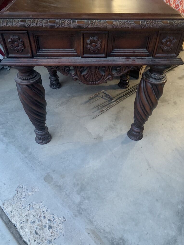 VenmoBeautiful solid wood table with ornate carved details and twisted legs. Very sturdy and heavy — not particle board. Would make a great accent table, entry table, desk, or project piece. • Solid hardwood • Detailed carved legs and apron • Classic antique / vintage style • Some surface wear from age (see photos) • Structurally solid Dimensions: 28x28. 26.5 tall Pickup only. Cash preferred.