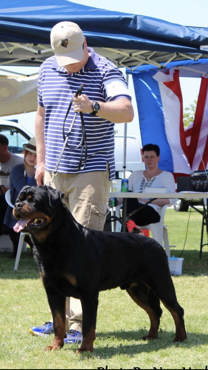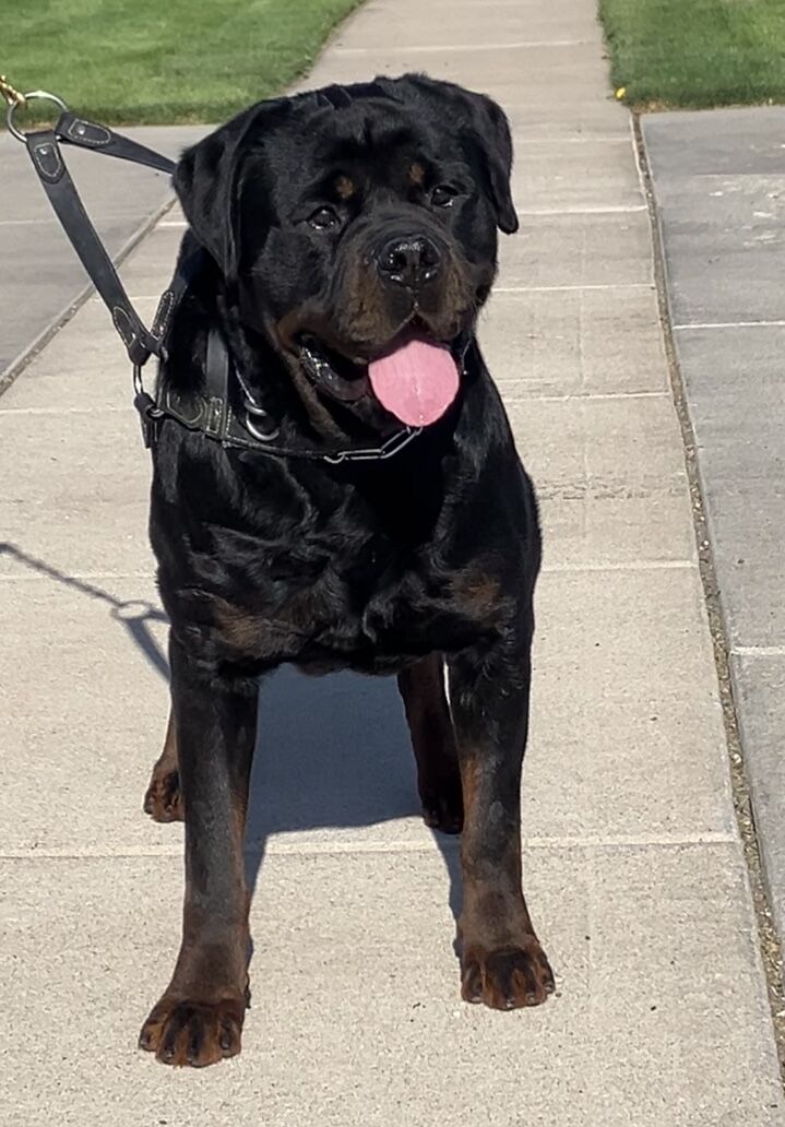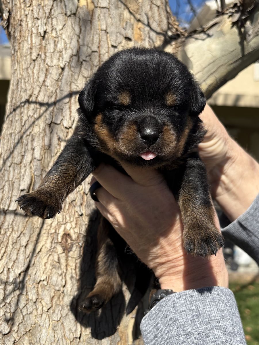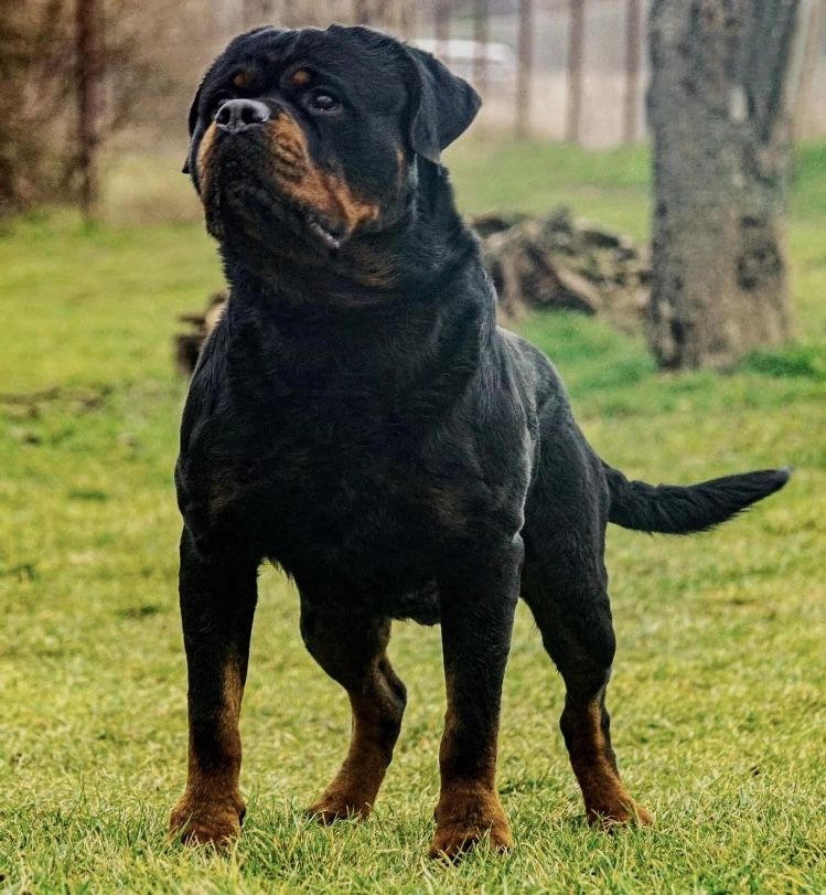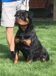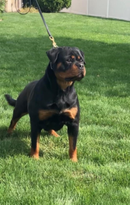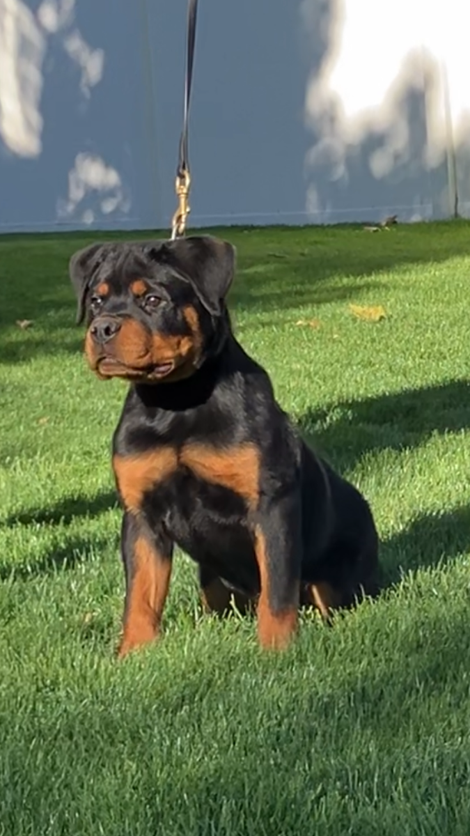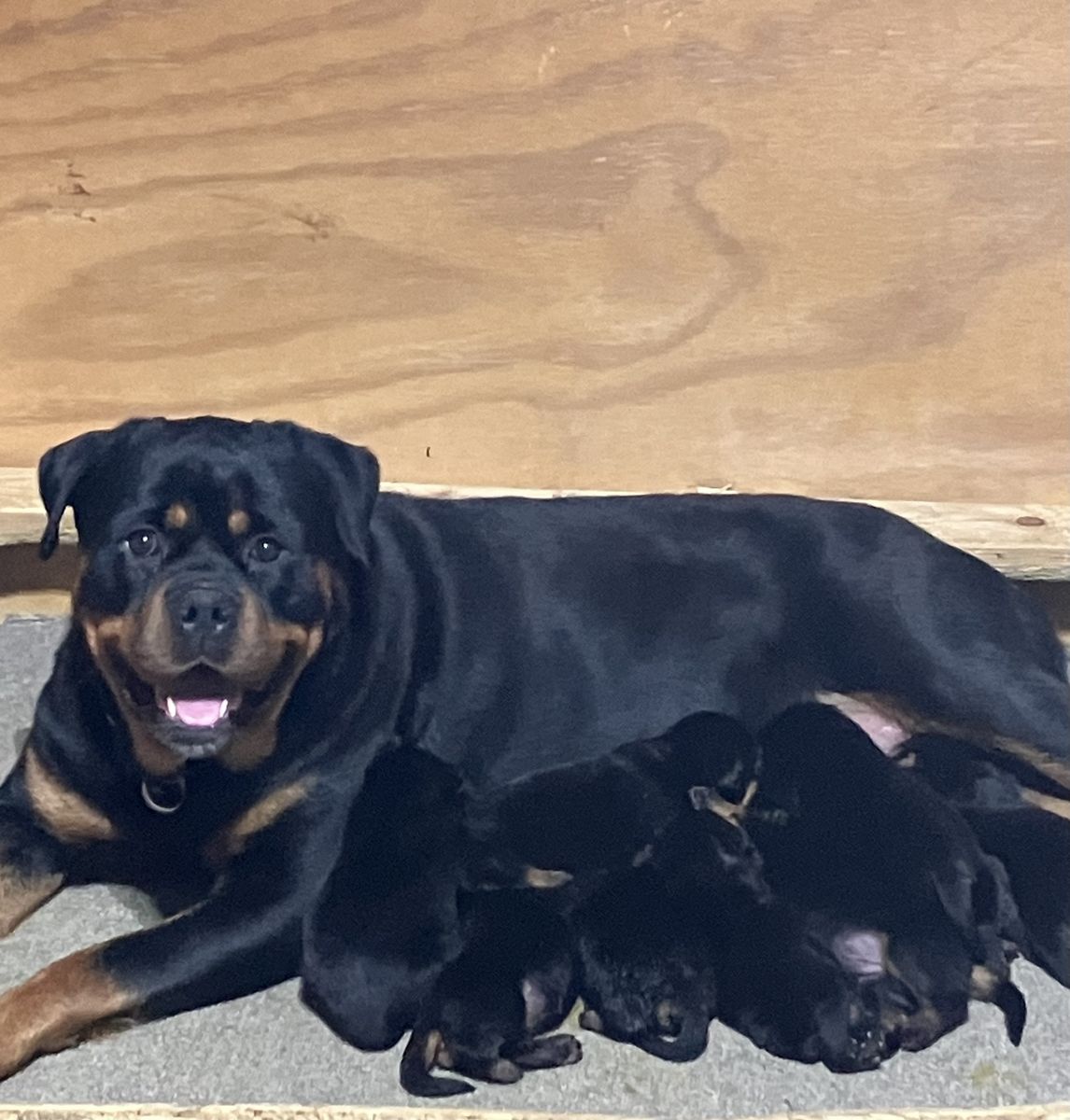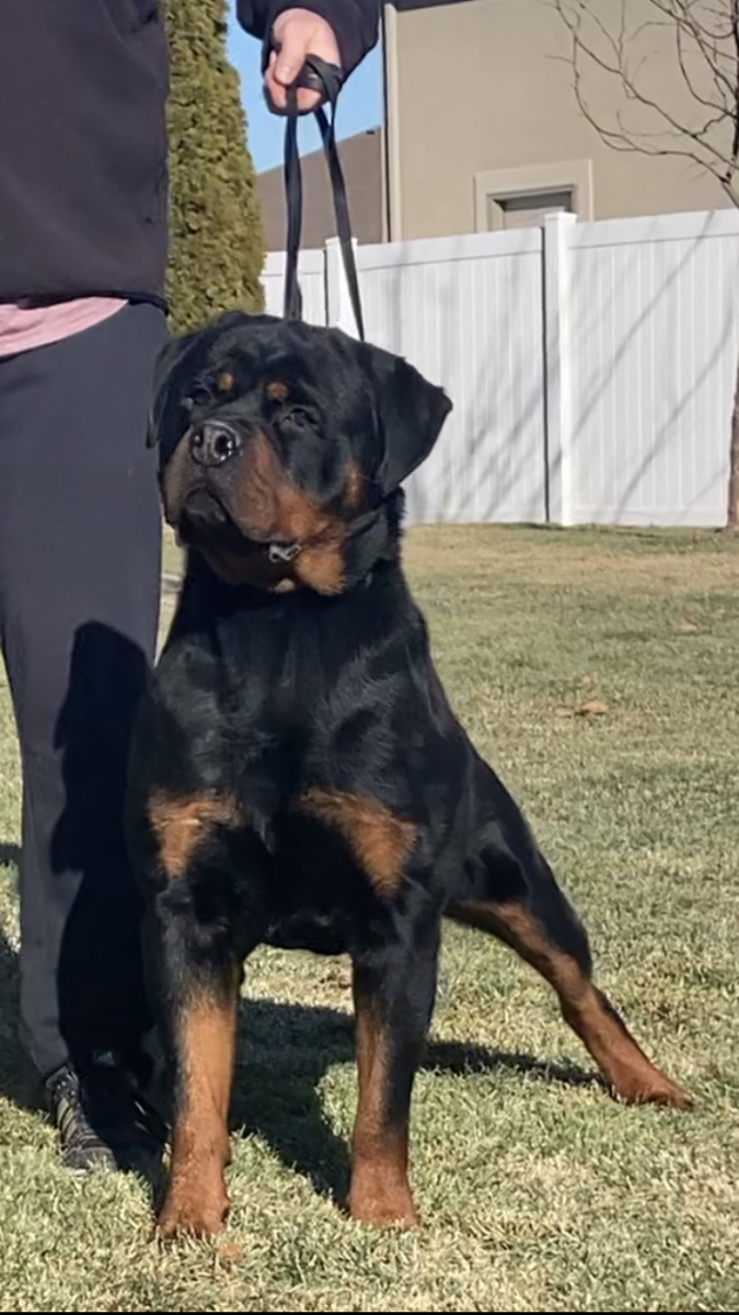 A quick note on breed type; We adhere to correct Rottweiler type and structure. “Smush-nosed” (brachycephalic) Rottweilers with shortened muzzles do not meet breed standards and may be associated with health concerns (including breathing issues, skin fold irritation, frequent ear infections and eye problems). We do not own—nor would we ever breed—Rottweilers exhibiting structural faults such as poor front assembly, insufficient angulation, weak rib spring, inadequate body condition, inccorrect pigmentation, pink mouths or light eyes. Our breeding program is built on breed type, bone strength, correct structure, soundness, and adherence to the Rottweiler breed standard.