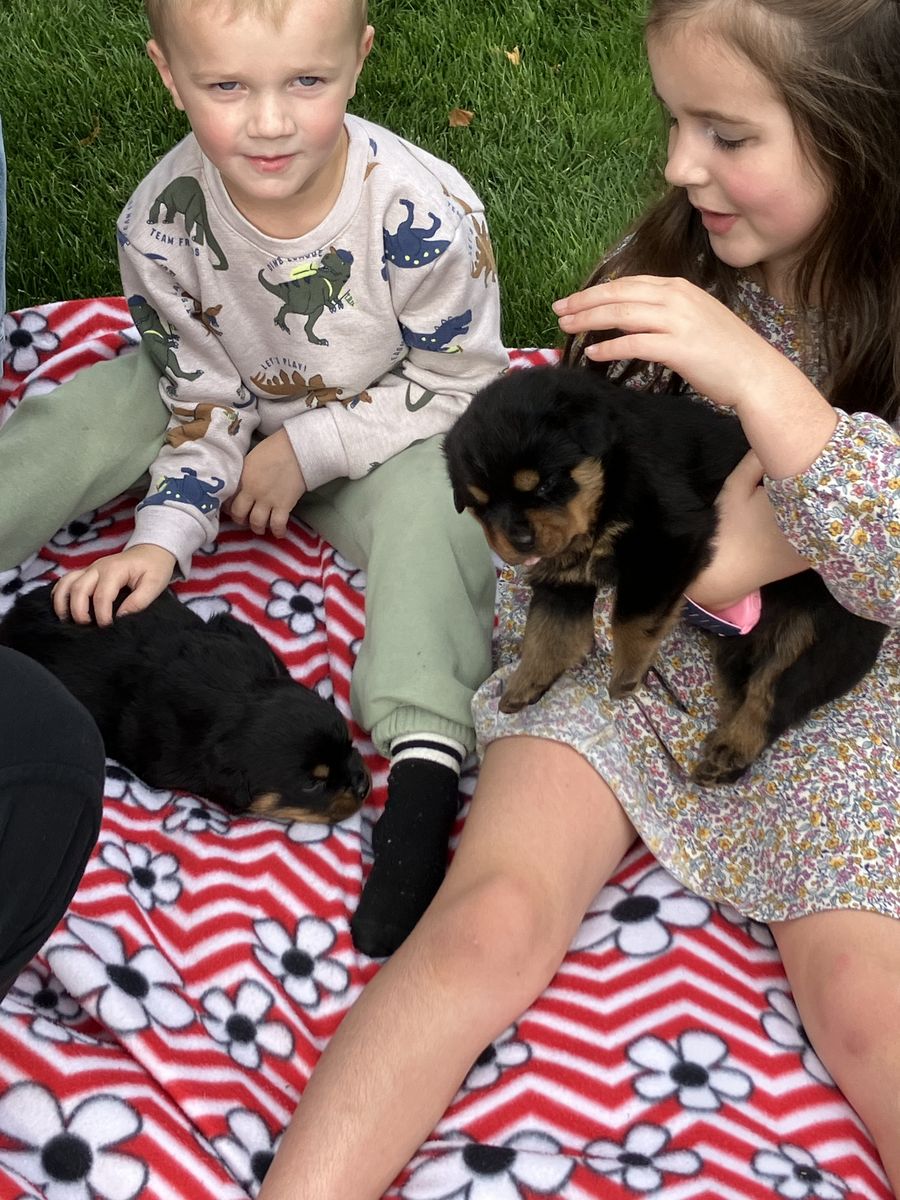 This is a wonderful opportunity to add a Rottweiler puppy from a long-standing, highly experienced breeder to your family. Our pedigrees reflect top German bloodlines, producing puppies with powerful, athletic builds, strong heads, and excellent structure. Temperaments are balanced, intelligent, outgoing, and family-friendly.