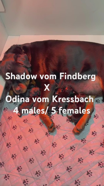 VenmoLochavens Rottweilers is excited to welcome an exceptional new litter in February 2026, from Shadow von Findberg x Odina vom Kressbach! 9 Beautiful puppies were born! (4 males/5 females). We invite you to come see firsthand the remarkable quality and care that set our kennel apart. This breeding is a proven repeat pairing, selected for its consistent success in temperament, health, correct breed type, intelligence, and overall beauty. The quality of this pairing is well documented through extensive owner feedback, including videos, photographs, and firsthand testimonials that confirm the exceptional results produced.