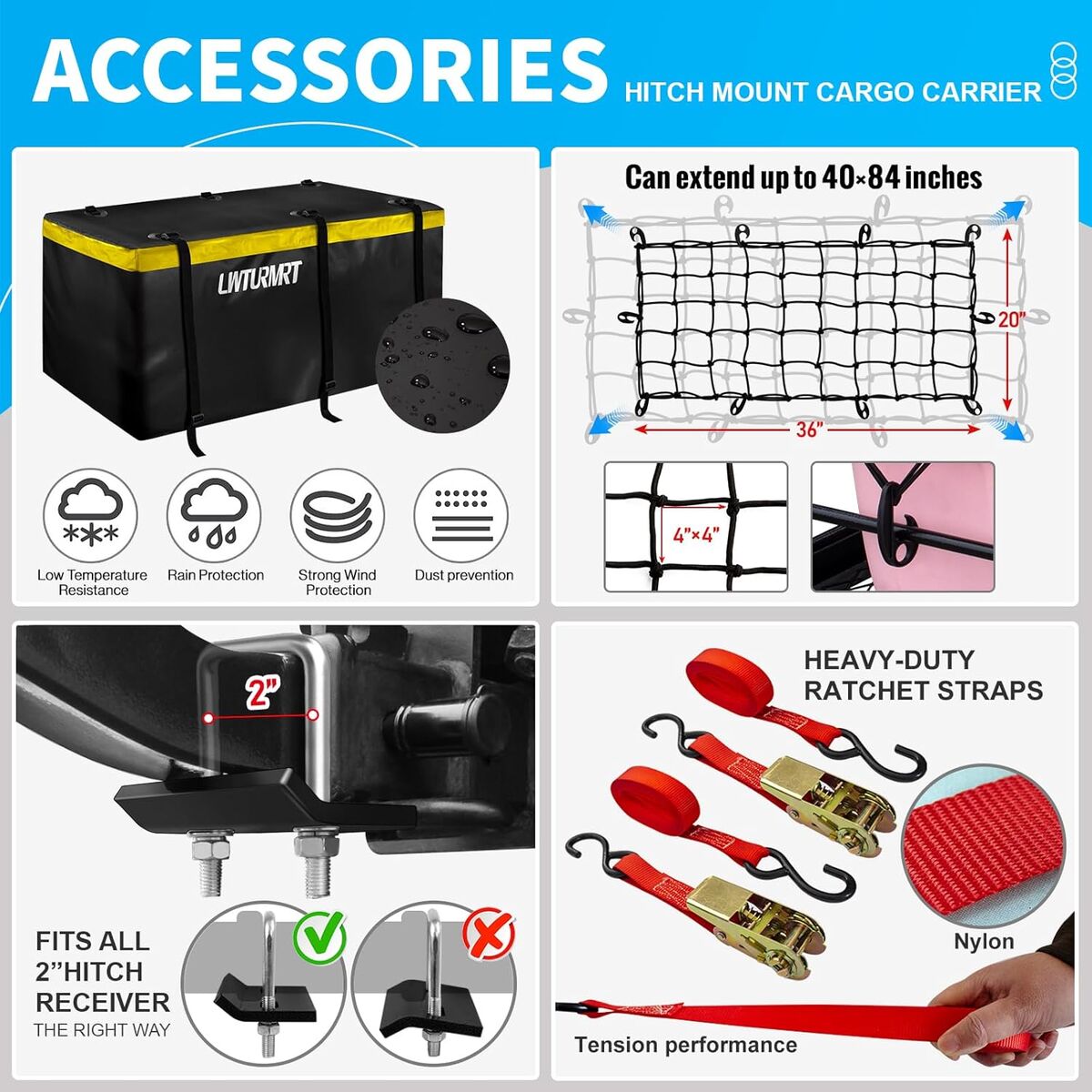 VenmoLWTURMRT trailer hitch cargo carrier. Will fit any size trailer hitch and has a weight capacity of 550 pounds. Comes with everything in the pictures. Brand-new and never used.