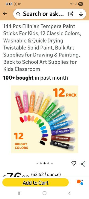 VenmoNew! 144 Count of 12 Colors Paint Sticks
