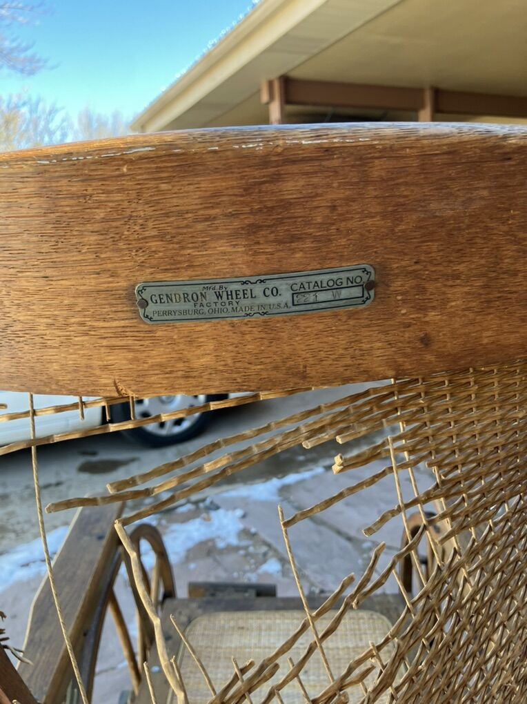 VenmoVintage Gendron Wheel Co. wooden Wheel chair. Functional chair. Caning on the back support needs replacement, but all else is functional. Gendron is known for its production of wire wheels. As all of these wheels are wooden Wheel chair, it is likely that this chair was produced during WWII.