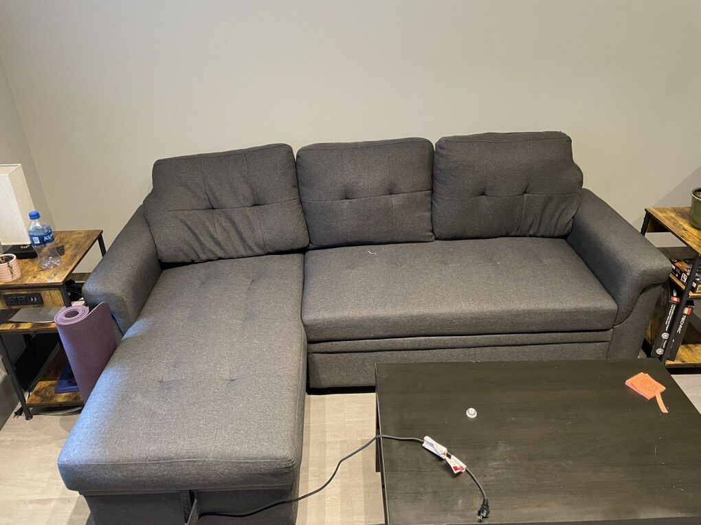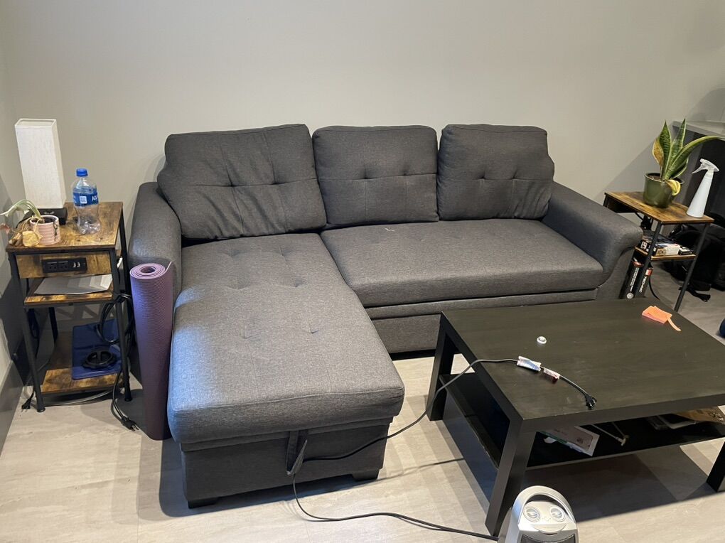 Selling an 82 inch pull out sofa/bed L shape modern sleeper sofa. Bought on August 2023. Willing to negotiate prices.