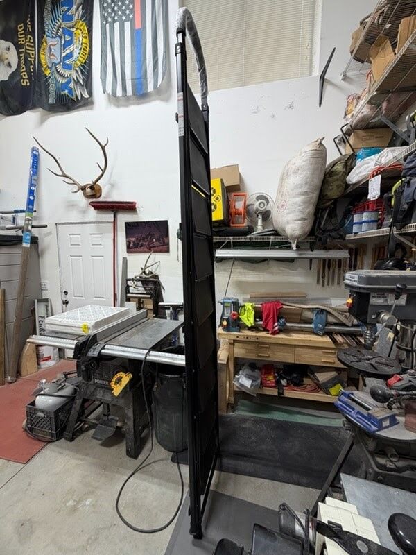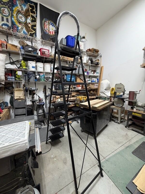 Venmo9ft step ladder. It has 9 steps and weighs 18lbs. Folds up flat for easy storage. Asking $200