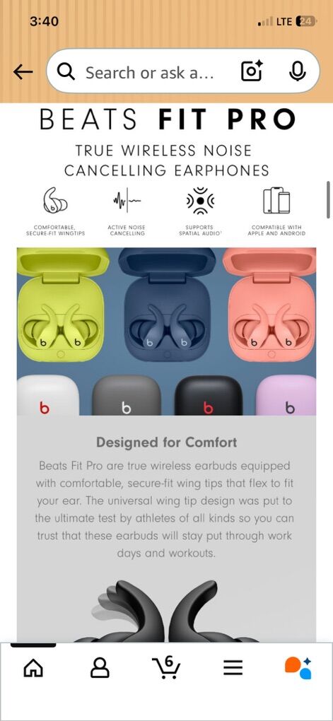 What’s in the Box – Beats Fit Pro True Wireless Noise Cancelling Earbuds; Matching charging case; Eartips with three size options; USB-C to USB-C charging cable; Quick Start Guide; Warranty card. (USB-C power adapter sold separately)