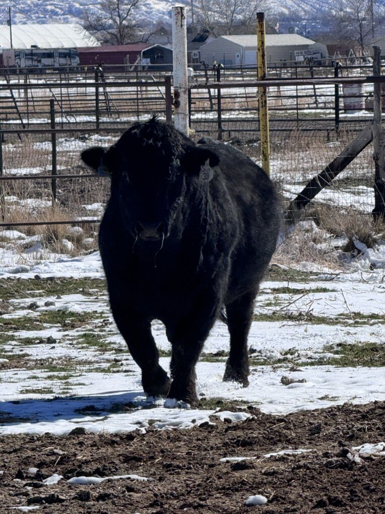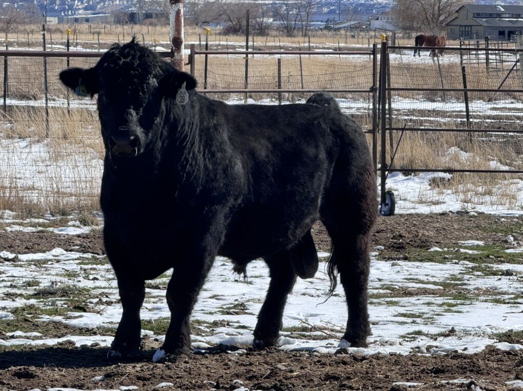 PB Simmental Bull. 3.5 years old. He’s out of Major Impact. All of his calves have been around 65 pounds, but they grow quickly and wean big. Heifers have had no problem with his calves.