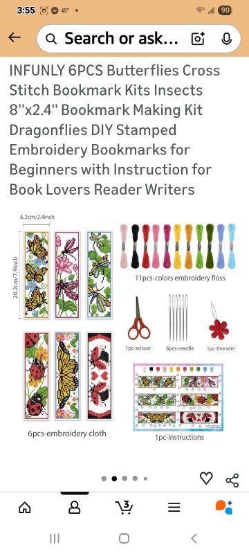 Brand-INFUNLY Color-Multi-color Theme-Insect Item dimensions L x W x H9.84 x 7.09 x 0.39 inches Material-Cotton Seasons-All Seasons BOOKMARK CROSS STITCH KIT: You will receive 6pcs cross-stitch Aida fabric with pre-printed pattern, multi-colors of cross-stitch thread, 6 needles, 1 threader and 1 English instruction. The complete kit is enough for you to complete 6 cross stitch bookmarks. UNIQUE DESIGN: Our Cross Stitch Bookmark Kits are designed with animal and flower themes, including butterflies, dragonflies, insects and other beautiful patterns, elegant and attractive, which will put you in a good mood every time you see it. EASY TO OPERATE: DIY Cross Stitch Bookmark Kit is easy to operate. A grid design is easy to cross through, clear printed pattern helps you control the position during the embroidery process, and can be washed away with warm water after finishing. HIGH QUALITY:The cotton thread used in the cross stitch bookmark kit is soft and tough, and the colors are bright and not easy to fade. Embroidered cloth is thick and durable. PERFECT GIFT: This bookmark making kit is a perfect gift for your friends who love cross stitching. Also, the finished bookmark will be great for your friends who love reading. They will definitely love this cute handmade gift!