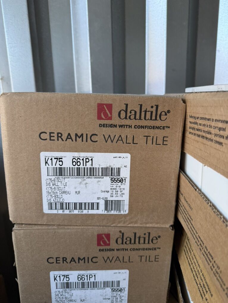 90 boxes of 6 x 6 wall tiles color code is k175  Price varies based on quantity. Will start at 25 a box Retail is $45 a box