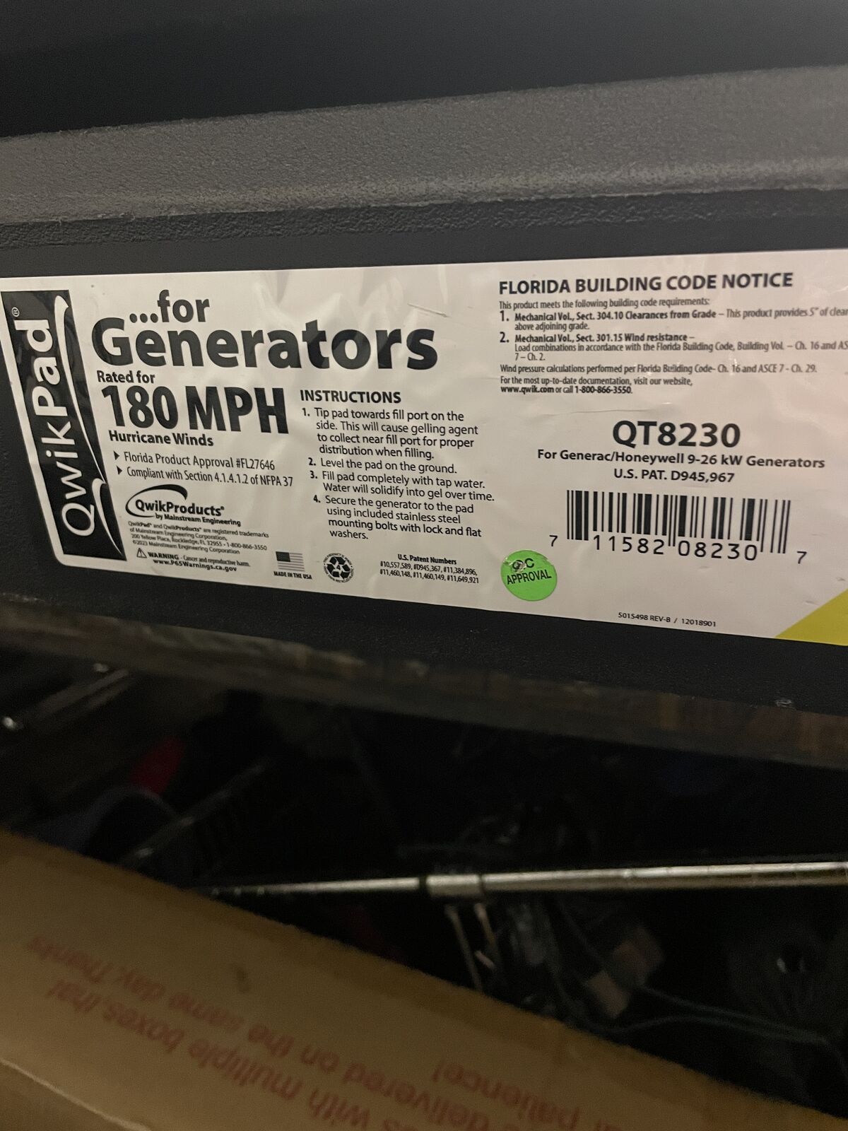 PayPalA QwikPad QT8230 Generator Mounting Pad (model QT8230) — designed for 9 kW-26 kW air-cooled standby generators (especially Generac / Honeywell).