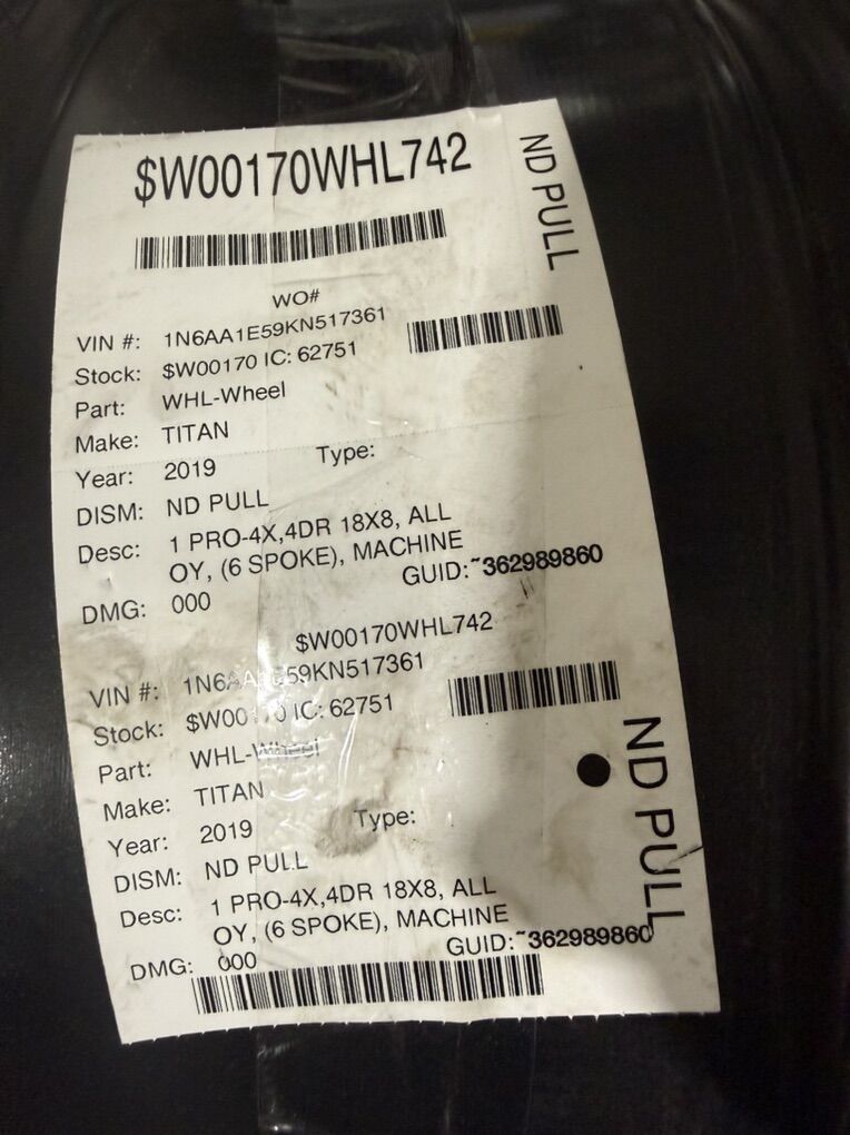 ZelleOnly one available. 18 x 8 wheel for Nissan Titan very good condition. Couple of minor marks.