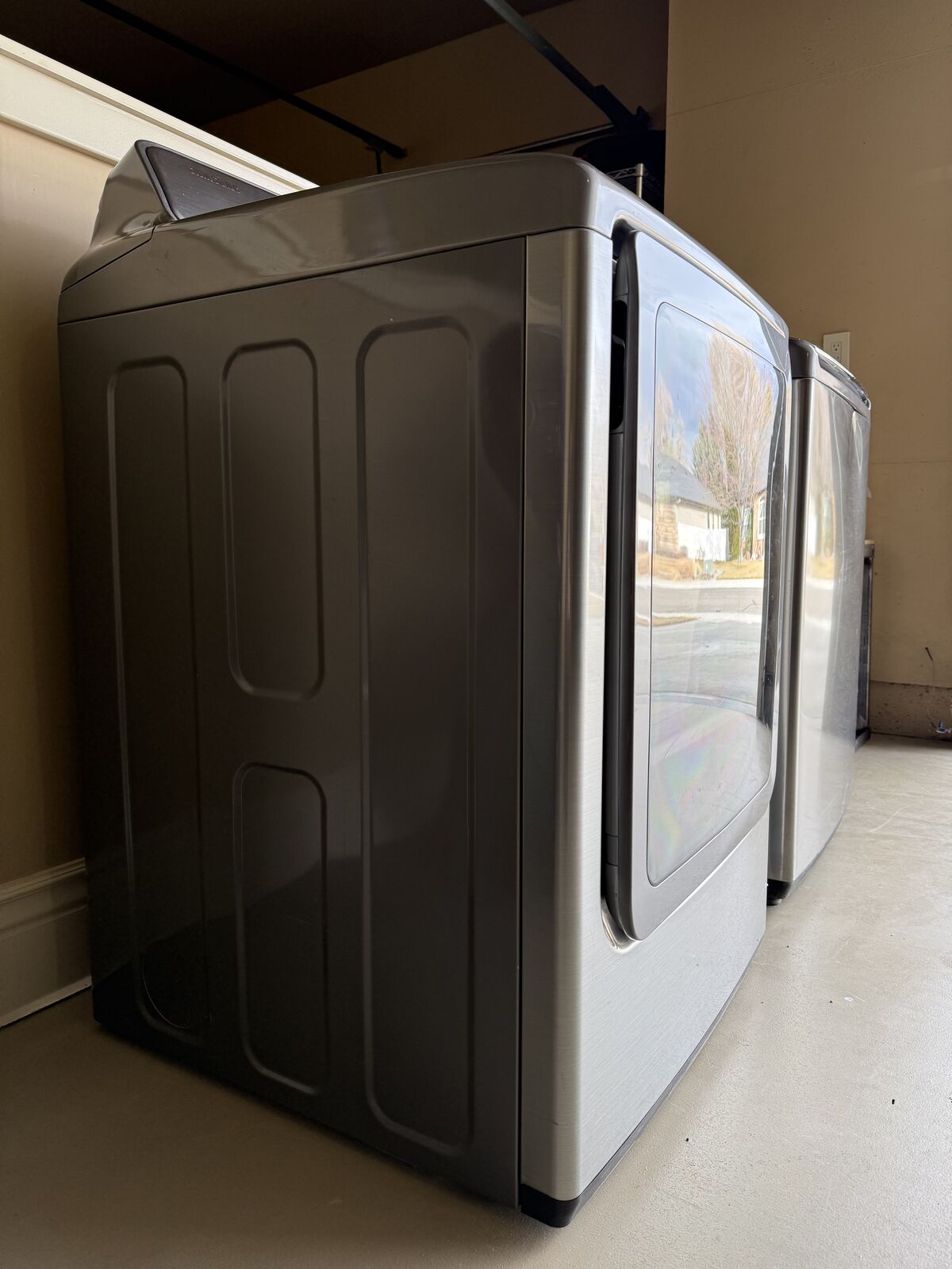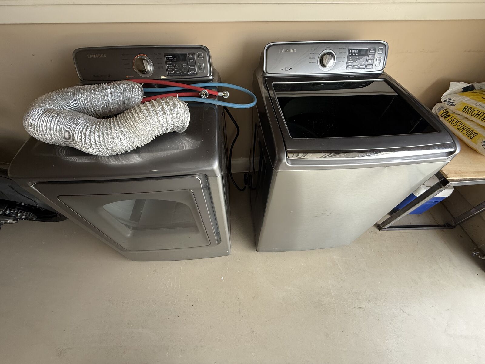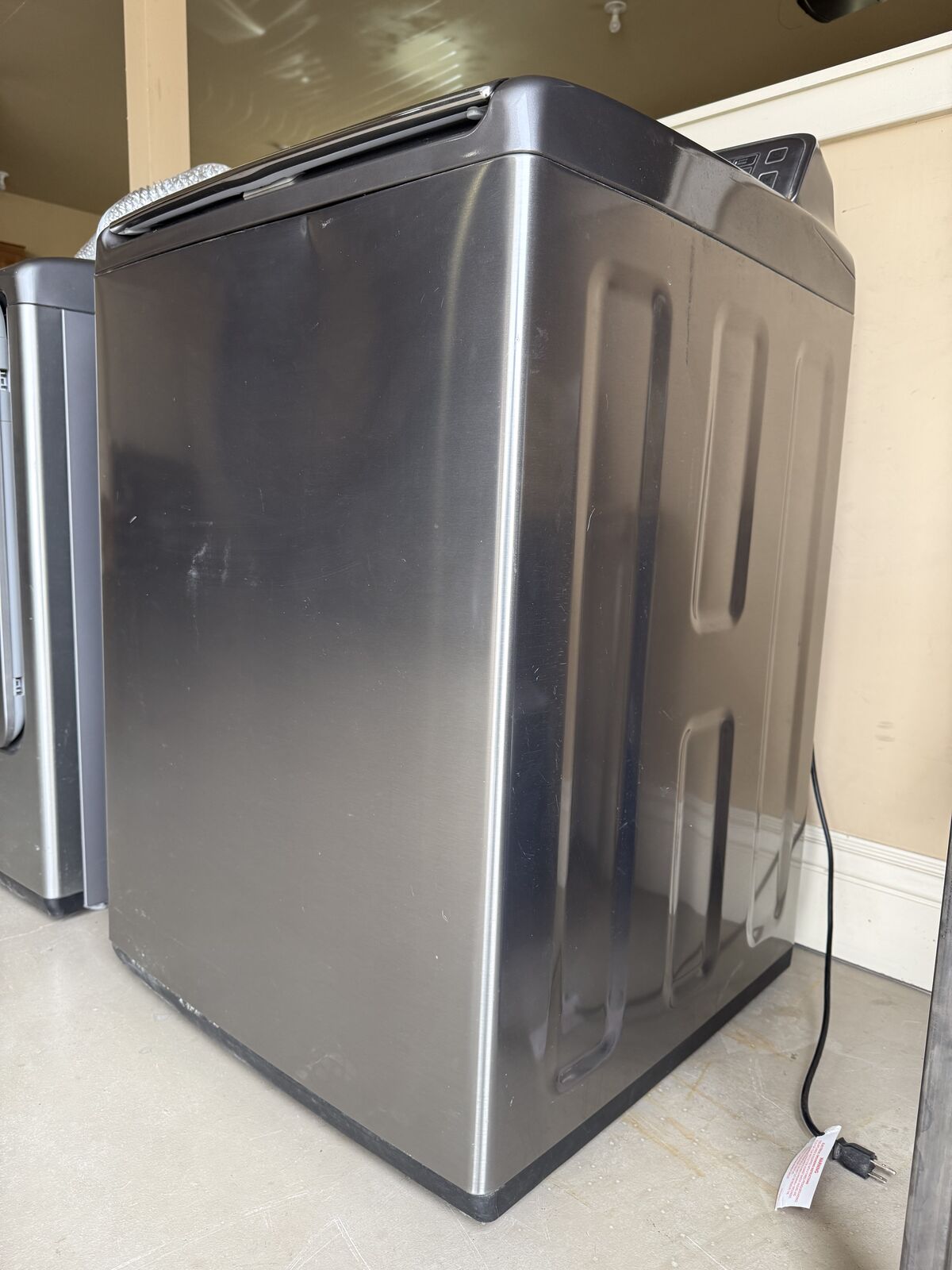 Both in great shape & condition, just don’t need them anymore, both are working very well, washer has minor dents as shown but does not effect usage whatsoever honestly if tried can push them out. Selling as is, need to clear up my garage. All hardware included for plug & play usability! SOLD TOGETHER! Info: -Samsung Brand -Stainless Steel material -Size:7.4 Cu. Ft.