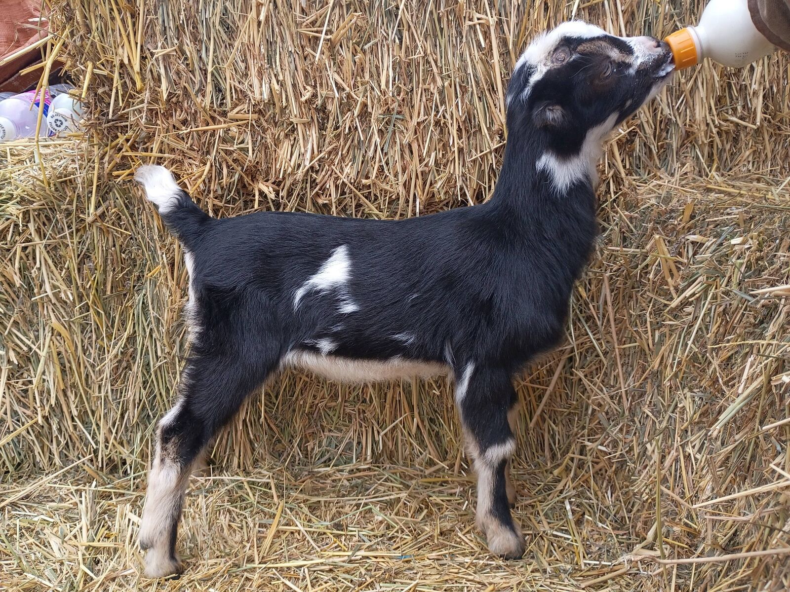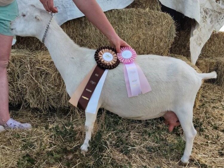They could be good buck prospects as well. Toaster Strudel, the black and white, is a 4th gen. Noodle, the white with blue eyes, is a 5th gen. Our two newest boys are 4th gens and there mom is pictured last. Their sires were shipped in from out of state and all four boys come from heavy milking lines! They would be $150-$175 cash w/registration application.