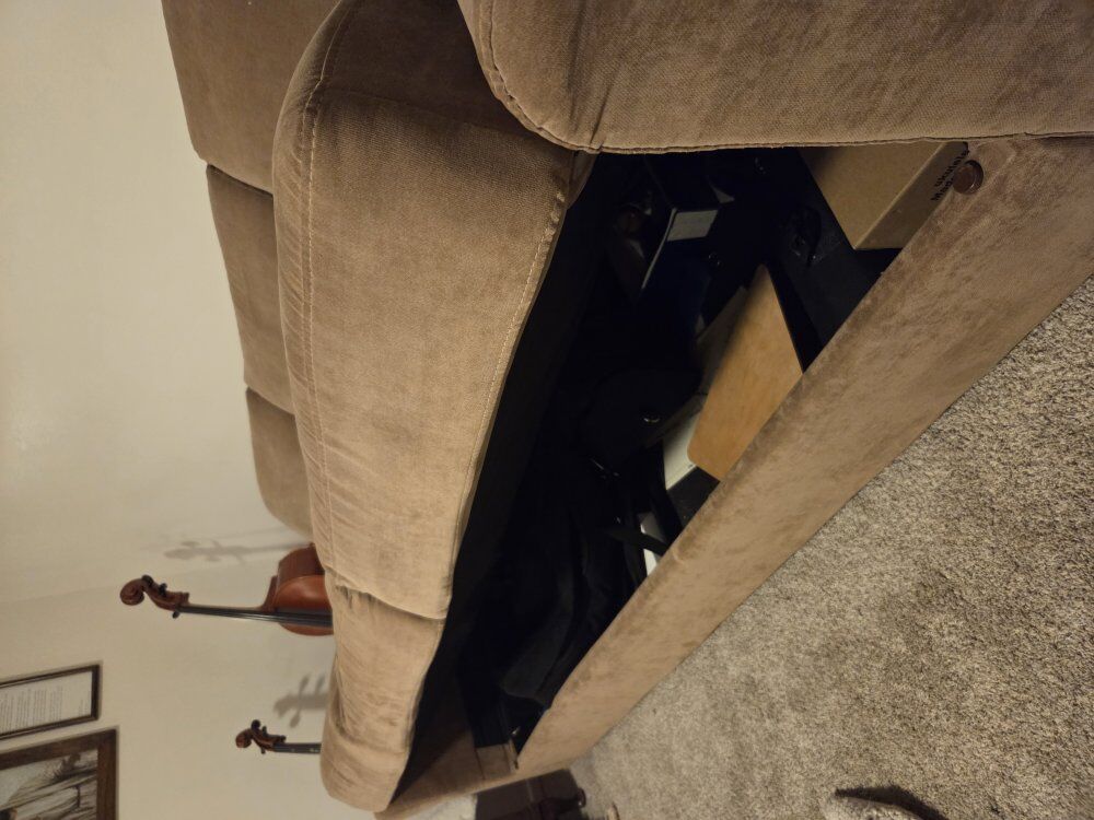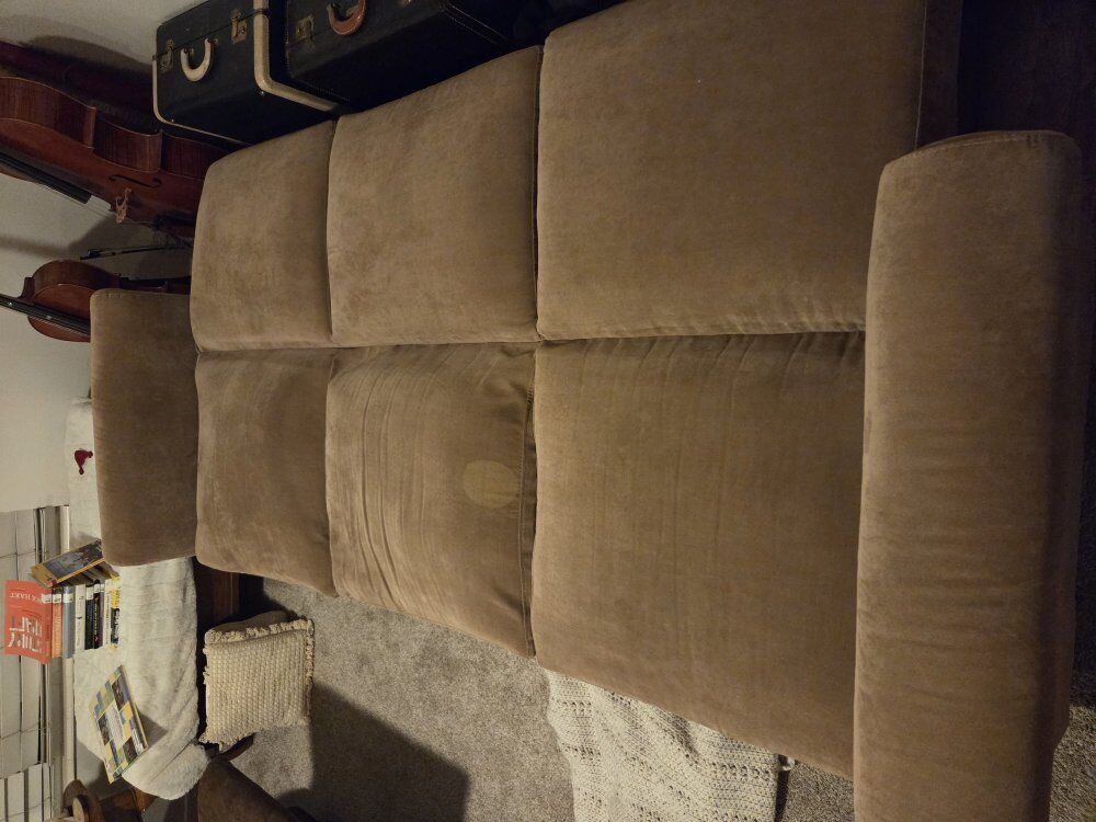 This is a great little couch. Light weight and easy to move with a back that folds down to make it a bed. It also has awesome storage space inside. It comes from a smoke free and pet free home.