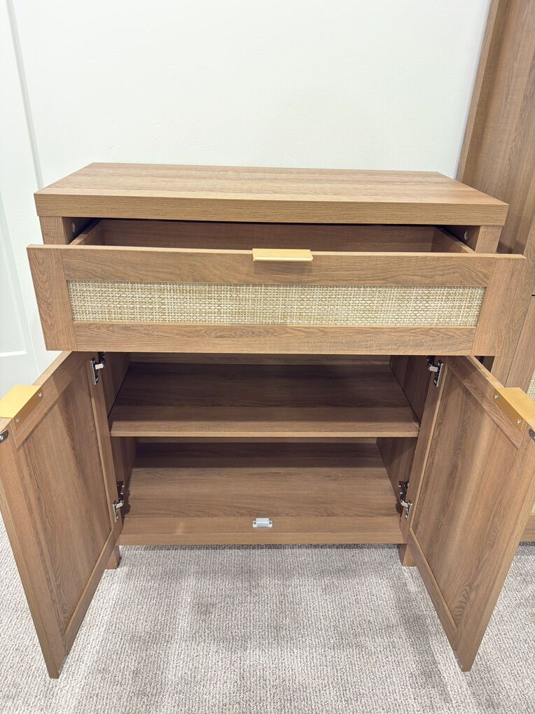SICOTAS Sideboard Buffet Cabinet, Rattan Credenza Storage Cabinet, Boho Buffet Table Console Cabinets with Drawer, Farmhouse Coffee Bar for Entryway Living Room, Natural Oak