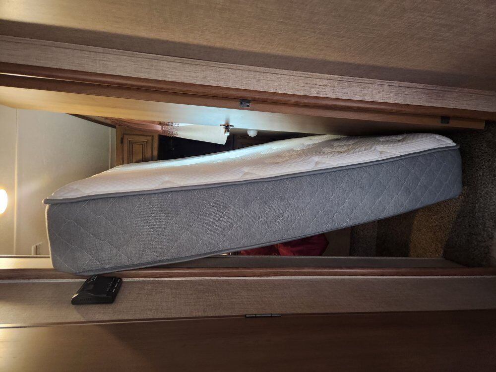 PayPal2 year old really COMFORTABLE. NICE CLEAN.RV Queen Mattress. used a memory foam topper on it so never direct contact with human. we kept this from our last trailer. our new one has regular size Queen. bought new camper with regular queen size. dont need this one any more. FYI MY WIFE LOVES THIS MATTRESS and doesn't want to throw it away!