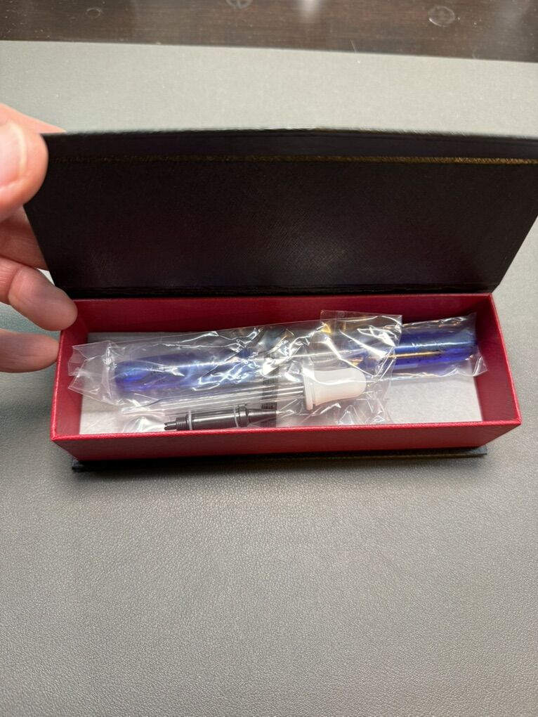 VenmoNew & Unused - In original box with extra rollerball tip. Designed by an online community of Chinese fountain pen enthusiasts, the PenBBS 469 features an extraordinary double-sided design. One end features a fine nib, while the other end features a medium nib. The two nibs have separate eyedropper-filled ink reservoirs, so you can use a different ink with each nib. It's a wonderful design for people who like to use different tip sizes or ink colors as they write. Each reservoir holds approximately 1 ml of ink, and an eyedropper is included with the pen. The pen also includes a rollerball tip that you can swap in for one of the fountain pen nibs. To install it, simply unscrew one of the pen's nibs from its grip section and screw the rollerball tip in its place. Features: Double-sided design with separate ink reservoirs for each nib. Steel fine and medium nibs. Rollerball tip. Acrylic resin body. Eyedropper filling system with included eyedropper. Gift box. Note: This pen only uses bottled ink, which is not included. Cash or Venmo only and in person transactions only please. Thank you but no trades.