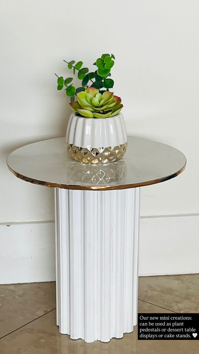 2 Displays, one of 14" height and the other one is 12" height. They can be used as plant pedestals, dessert table displays or cake stand, cupcake stands.