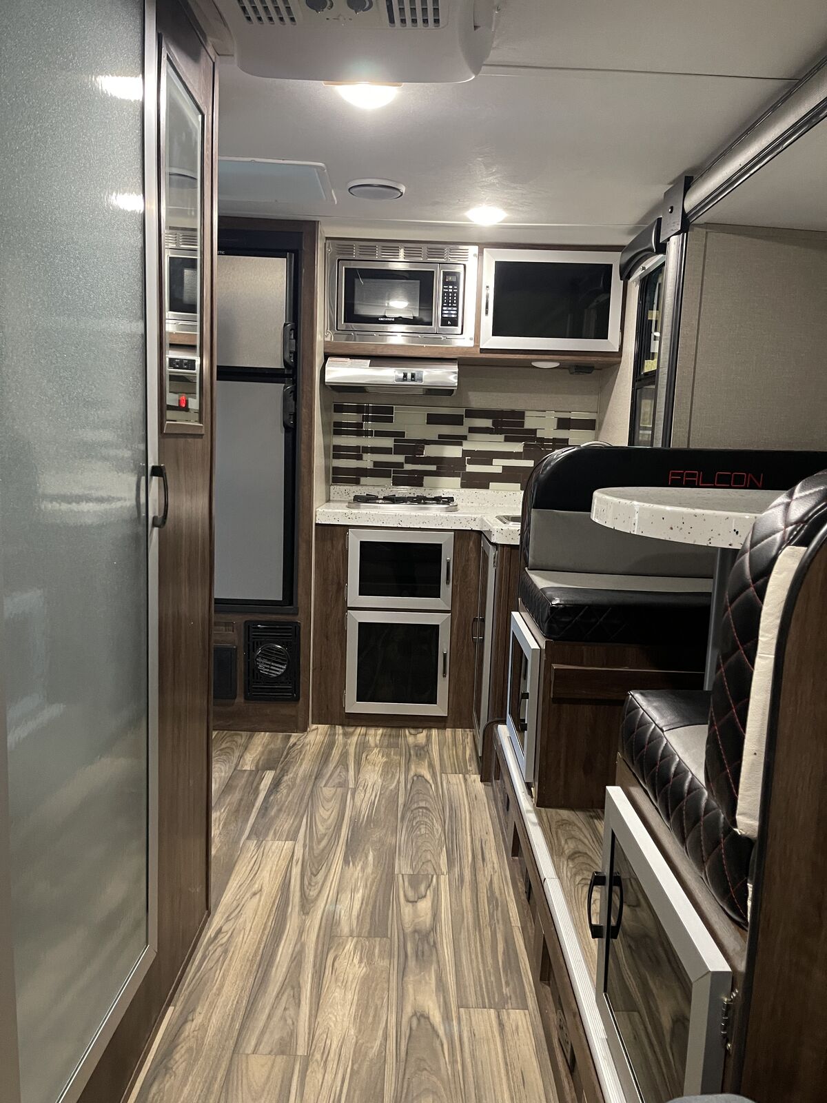 ZelleSelling my 2019 Travel Lite Falcon F-22RK — a super lightweight, easy-to-tow travel trailer perfect for weekend getaways or extended trips. This model is known for its aerodynamic design and weight-saving aluminum construction, making it a great match for half-ton trucks and SUVs. We were going to use it for a business but ended up not using it, so we've only taken it out camping a couple of times. Before we owned it, it also saw very little use so it is in excellent condition and everything works. Key Features:
