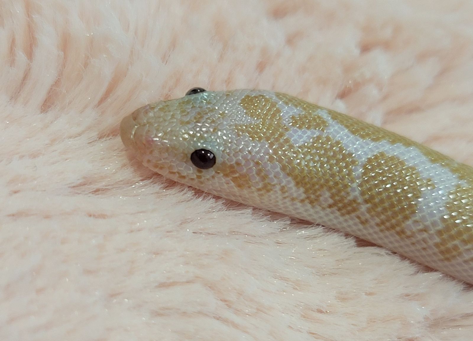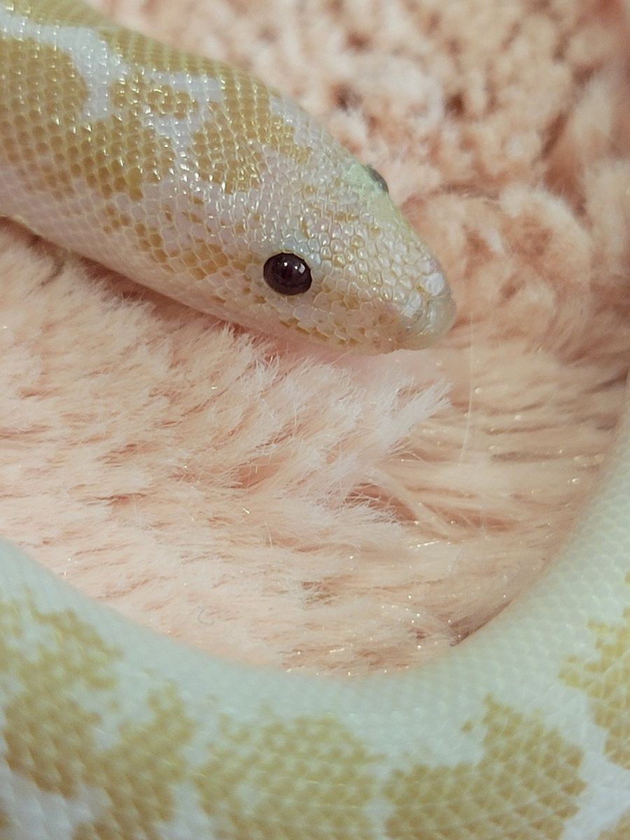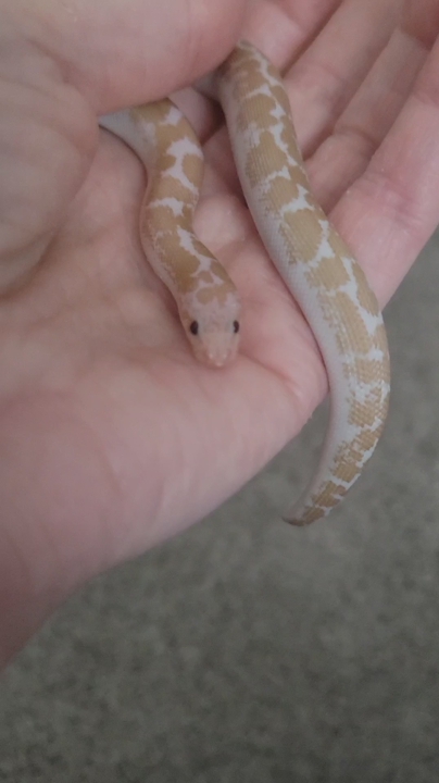 An adorable baby male Snow Kenyan Sand Boa. It's 11" long, and unsexed. It eats pinky mice. It doesn't come with an enclosure or any accessories. (Cash Only)