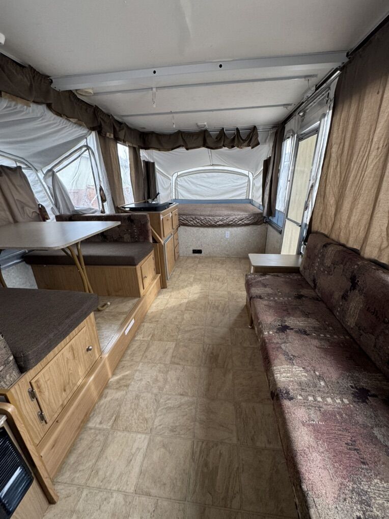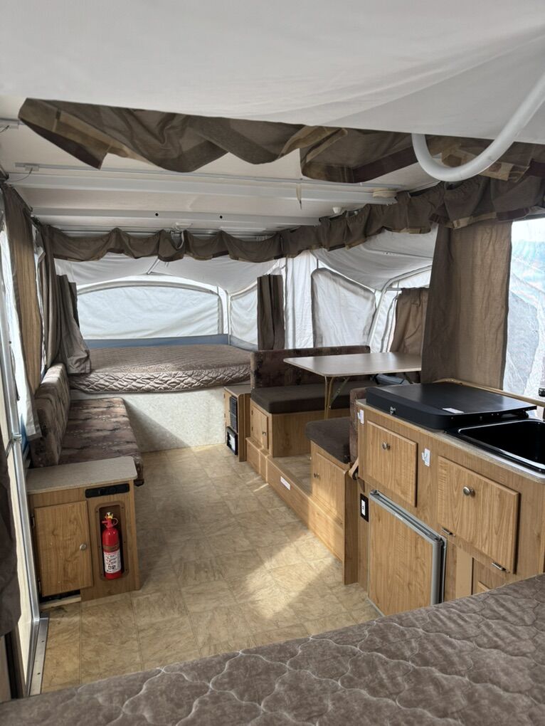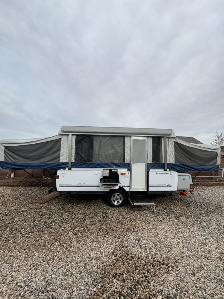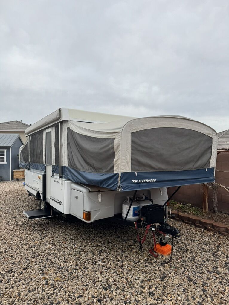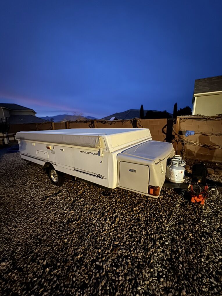 I have this tent trailer with slide out that I’ve used for many years still in great condition. No leaks water connections work heater works fridge. Works power and lights work driving lights work. Everything works. It’s got a slider so it has a lot more space than your typical tent trailer we upgraded to a larger trailer so I don’t need this anymore. I can sleep up to 8 people and doesn’t take up that much room easy to pull has 2-3 burner stoves. It has an outdoor shower that can be both cold water and hot water . Two propane tanks, a battery and awning the two and beds are king size. The canopy and roof do not leak. It’s been an excellent trailer. Let me know if you’re interested. I have a title in hand.
