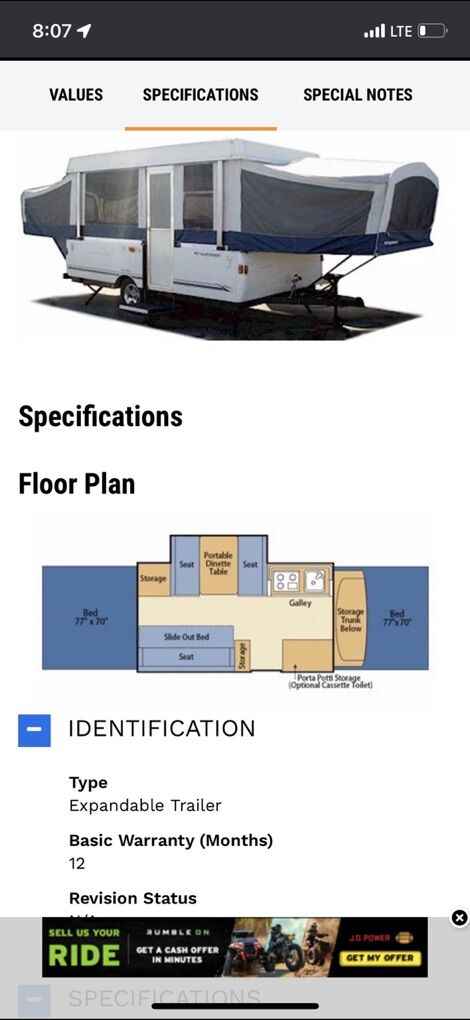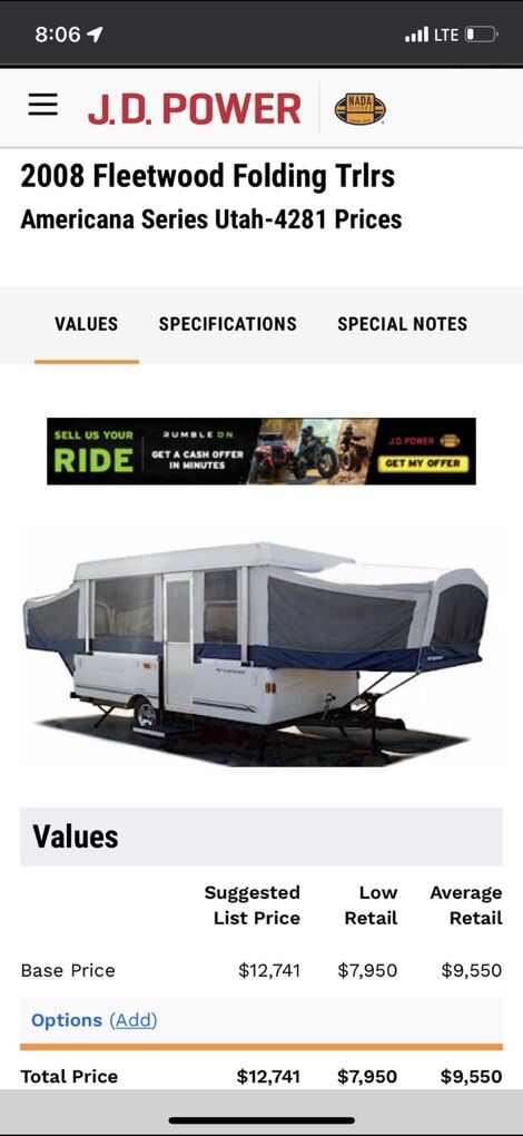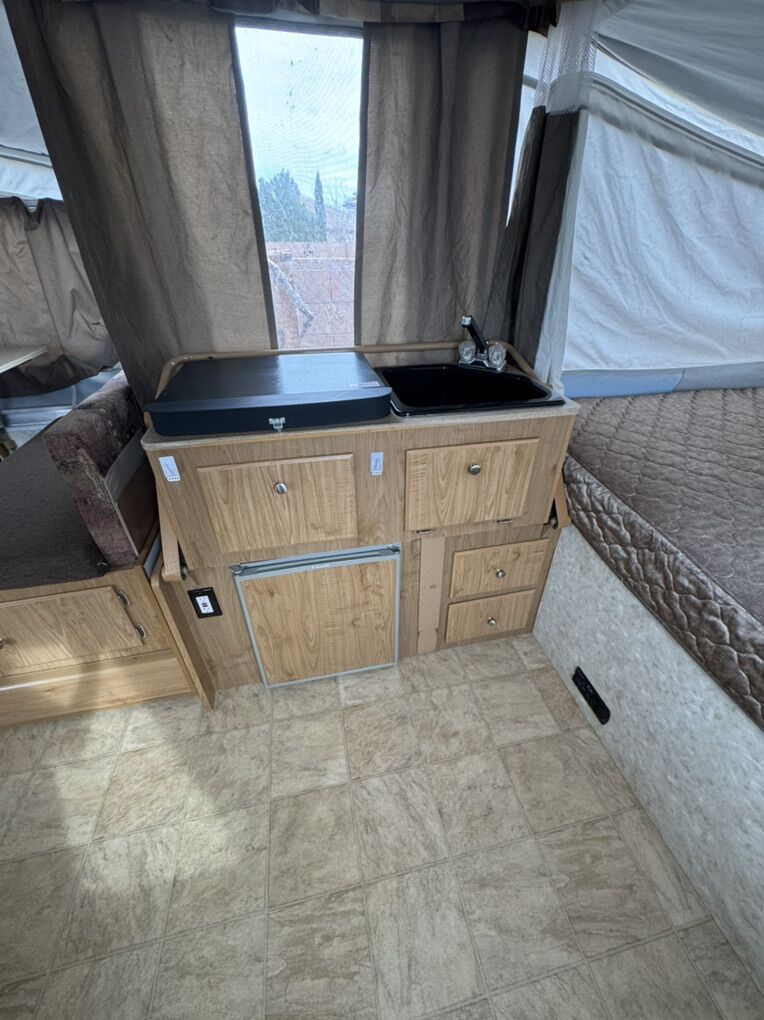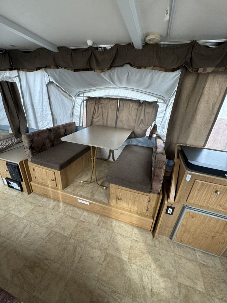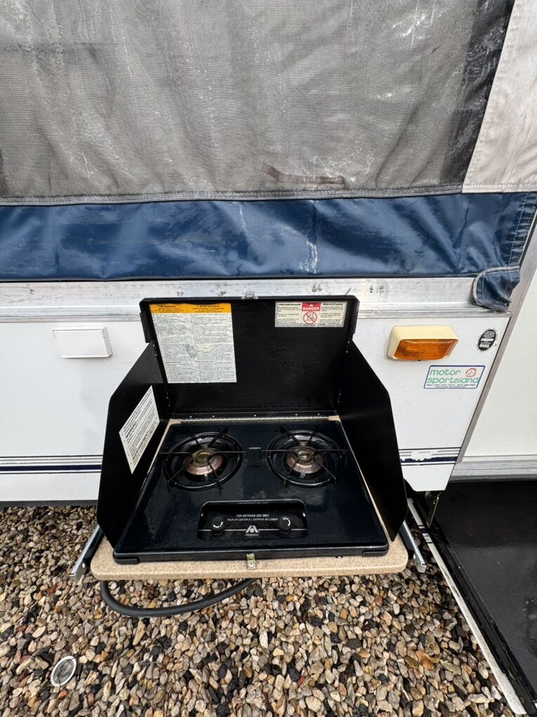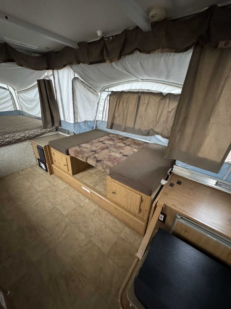 I have this tent trailer with slide out that I’ve used for many years still in great condition. No leaks water connections work heater works fridge. Works power and lights work driving lights work. Everything works. It’s got a slider so it has a lot more space than your typical tent trailer we upgraded to a larger trailer so I don’t need this anymore. I can sleep up to 8 people and doesn’t take up that much room easy to pull has 2-3 burner stoves. It has an outdoor shower that can be both cold water and hot water . Two propane tanks, a battery and awning the two and beds are king size. The canopy and roof do not leak. It’s been an excellent trailer. Let me know if you’re interested. I have a title in hand.