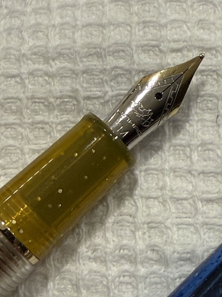 Set of three Jinhao 82 Fountain Pens - Transparent Starry Sky Color Acrylic, Medium Point Gold Trim with piston converters. Two are NEW and UNUSED, one was used for a single tank then carefully cleaned and stored.