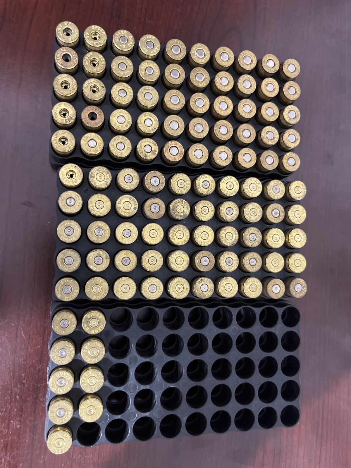 Also 109 brass cases: 41 primed and resized casings 10 de-primed and resized casings 58 fired brass casings