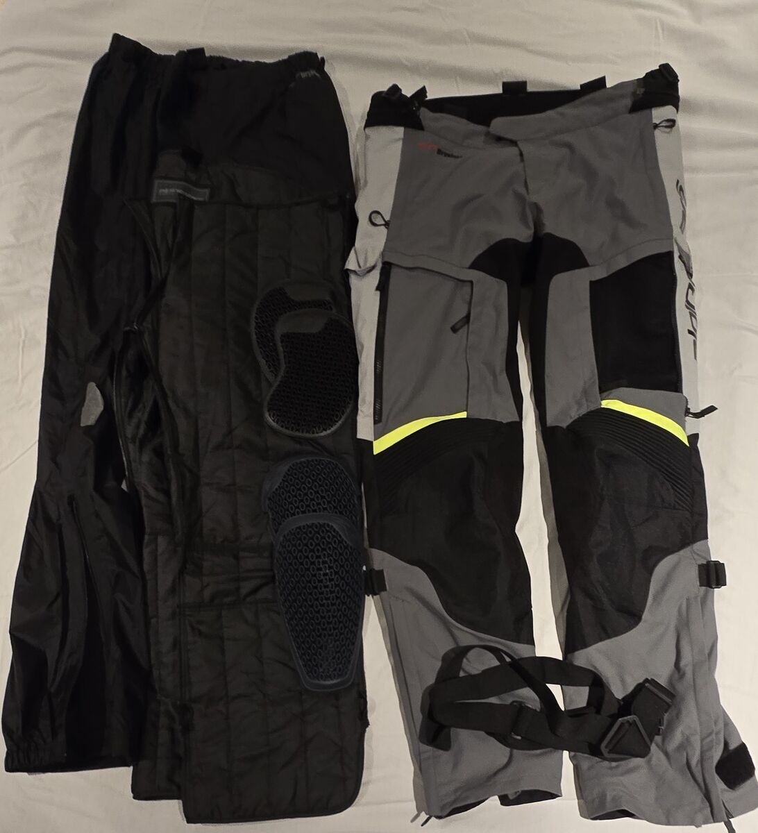 VenmoI have decided to wear additional armor when riding so this pants are now too small for me. These are great pants. Well ventilated. True multiseason protections. Main jacket, rain cover, snap in insulation layer, 2 hip pads, two knee pads. I have used these in 35F to 100F weather. Opening vents is very easy. These are designed to wear over the boot. I have 40in waist. With all the pads and insulting liner it, I would estimate it is about a 38 in waist with the thermal liner. Description The multi-season Bogotá Pro Drystar® 3 Seasons Pants are engineered to deliver optimal protection, weather performance and comfort, and utilize Alpinestars technical laminated Drystar® waterproof liner that provides superior breathability and exceptional wet weather performance. The pants have a DWR (Durable Water Repellent) treatment for additional wet-weather performance. Designed with a tailored, ergonomic fit to comfortably accommodate all riding movements. The Bogotá Pro pants have large direct ventilation panels on the thighs for effective climate control in varying weather conditions. Featuring a lightweight micro ripstop and 600D poly-fabric construction for enhanced durability, these pants are equipped with Level 2 CE Nucleon Flex Pro knee armor and Bio-Flex hip armor for effective protection against impacts. The liner to drop year-round pants are designed for adventure riding and come with a waterproof Drystar® membrane that can be worn either inside or on top of the pants. construction Ripstop and 450D coated hard shell constructed from 100% GRS certified recycled Nylon 6 materials for light weight and enhanced durability. 600D reinforcements for additional durability in key areas. protection According to European statutory law the CE mark is a conformity requirement for the marketing of this product. The following standards apply: Fully CE-certified riding garment to CE – Category II EN17092 standards – AA Class. key features Technical laminated Drystar® liner provides superior breathability and exceptional wet weather performance. Drystar® liner can be worn over or under the main outer shell for real-world practicality and versatility. ‘Liner to drop’ system allows the pants to be configured to the conditions, while being quick and easy to use. DWR (Durable Water Repellent) treatment for additional wet-weather performance. Wide ventilation panels thighs effective climate control in any conditions. Direct ventilation panel can be operated with one hand for fast and effective climate control on the go. Comprehensive stretch inserts for optimum freedom of movement and an enhanced fit. Level 2 CE Nucleon Flex Pro knee armor and Bio-Flex hip armor for effective protection against impacts. Two hand pockets for safe and secure storage of valuables. Waist adjuster and calf volume adjuster for an optimized fit. Designed with a tailored, ergonomic fit to accommodate all riding movements. Reflective detailing on the lower leg.