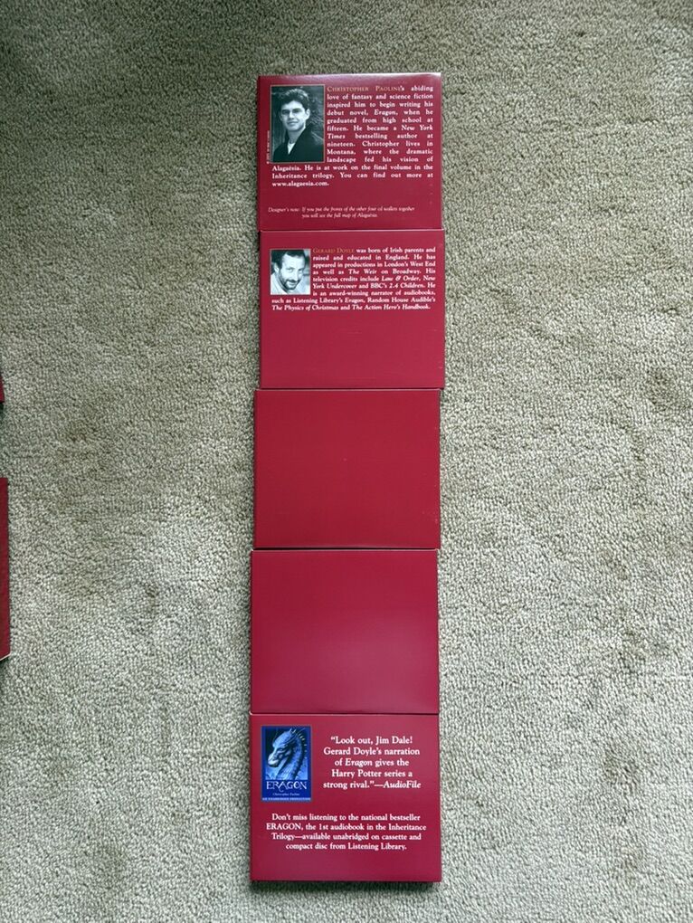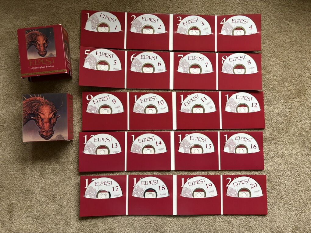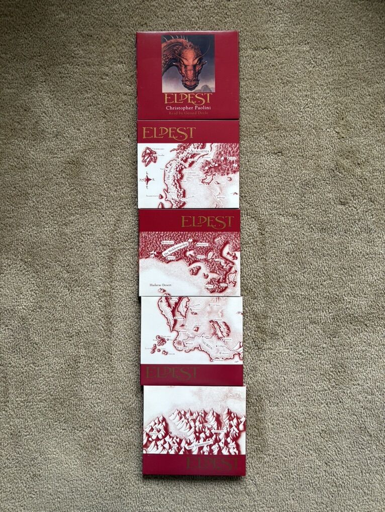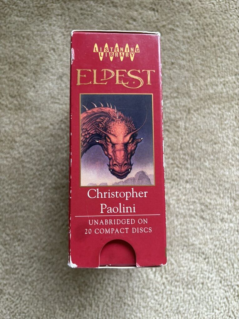 Eldest Audiobook, by Christopher Paolini, read by Gerard Doyle. Book 2 in the Inheritance series. Unabridged on 20 compact discs. Approx. 23.5 hours. Excellent condition. Box slightly scuffed. Text only. Cash or Venmo.