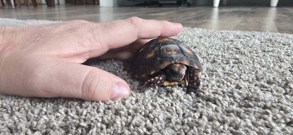 Venmo5 month old hatchling. Jet black plastron and ruby red head. adults are roughly 8.5-9 inches. True small Cherryhead tortoise. Some develop marbling around 1 year old. I don't know the sex. Measures right at 3 inches righr now. Asking $300. obo Cash or Venmo