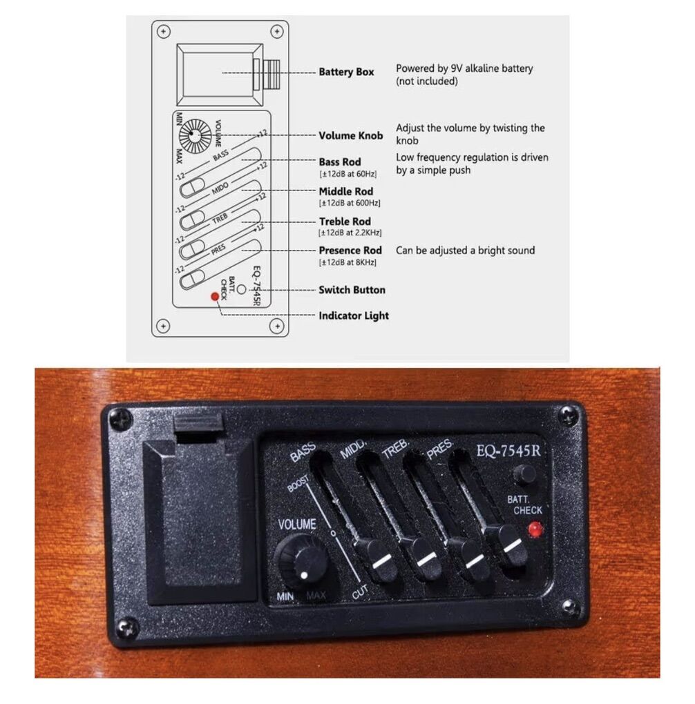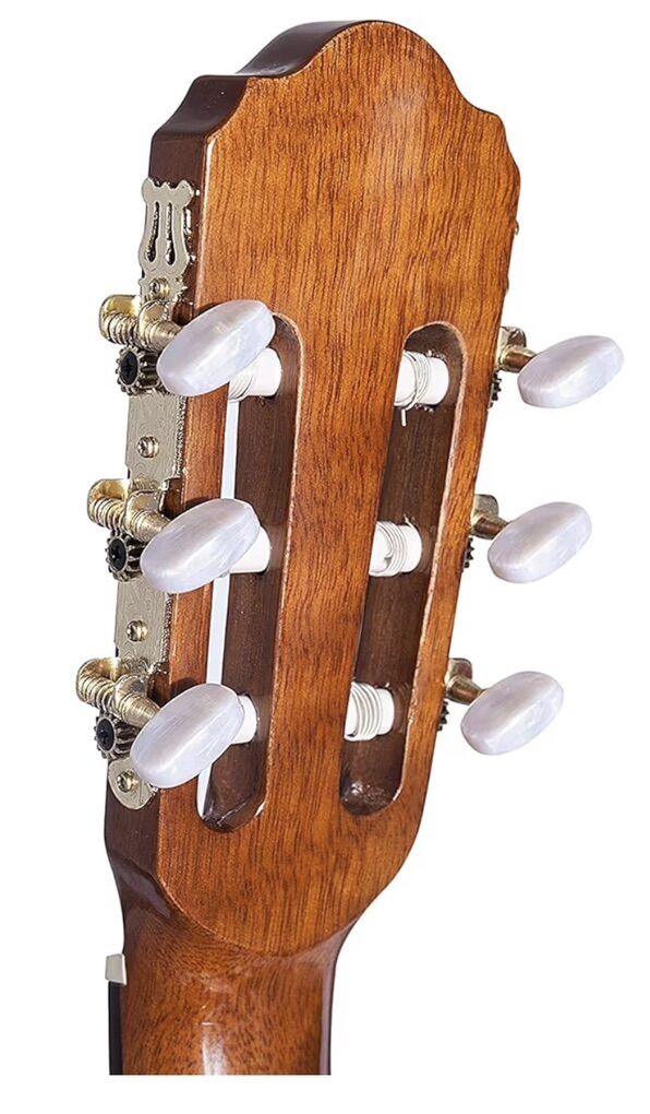 The WINZZ AC309CE is a 39-inch, full-size (4/4) nylon-string acoustic-electric classical guitar designed for beginners and students. It features a cutaway design, a built-in 4-band equalizer (EQ) for amplification. Key Features & Specifications: Body & Material: Classical cutaway body, typically constructed with a Sapele top, back, and sides. Some models feature a solid spruce top with basswood back/sides. Neck & Fingerboard: Nato wood neck with a Rosewood or Techwood fingerboard. Electronics: Piezoelectric pickup with a 4-band EQ (Volume, Bass, Mid, Treble). Strings: Nylon strings. Hardware: Gold-geared tuners with pearloid buttons. Dimensions: 39 inches total length.