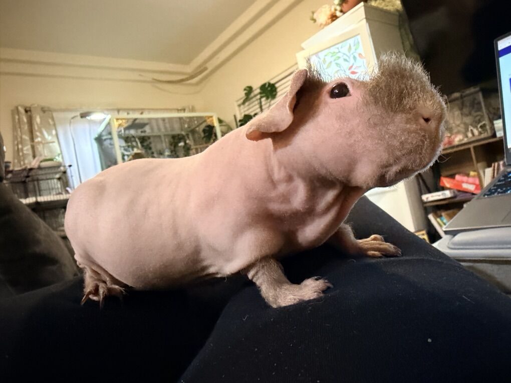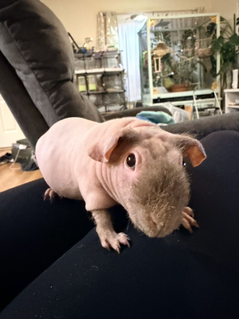 VenmoWe are looking to rehome our two 6 month old skinny pigs, Ginny and Bitsy (aka the SuperGUINEAS!) These “baby hippos” are very friendly, curious, and great with kids. They are handled regularly and are used to an attentive home. We have kept them in the main living space, so they are used to a high level of traffic and interaction. Important: They cannot share a cage, but they need to be housed side-by-side where they can see and interact with each other through the bars. They are bonded socially, just not able to cohabitate. Guinea pigs suffer from anxiety and depression if housed alone, so these sisters can't be separated. They will come with their full enclosure setup (48” L x 24” D x 40” H), hideys, potty pads, accessories, and remaining supplies. Skinny pigs require extra warmth and attentive care due to being hairless. We are looking for someone familiar with guinea pig care (experience with skinny pigs is a plus). We care deeply about where they go and are happy to answer questions.