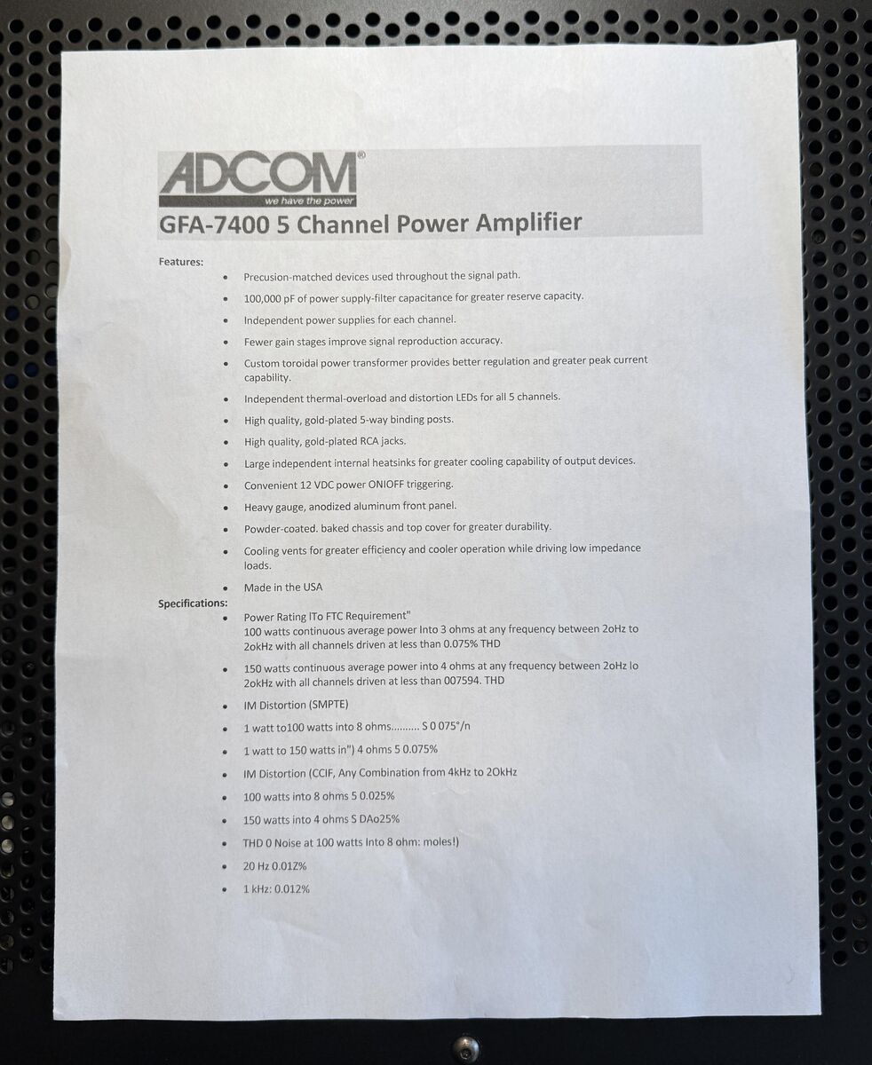 VenmoExcellent sounding and powerful home theater amplifier. Works great with a pre-amp or receiver. Cosmetic condition and performance are 9.9/10. With original box.