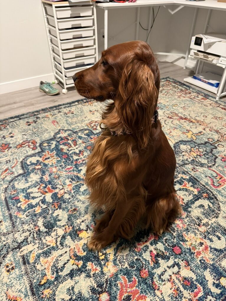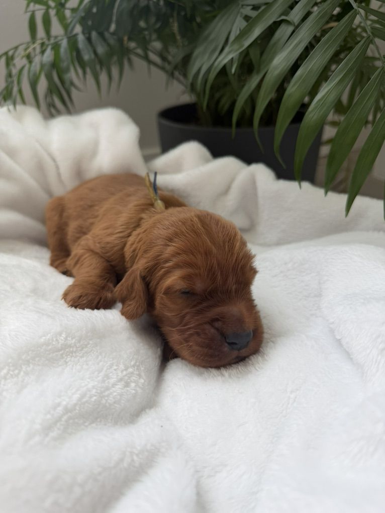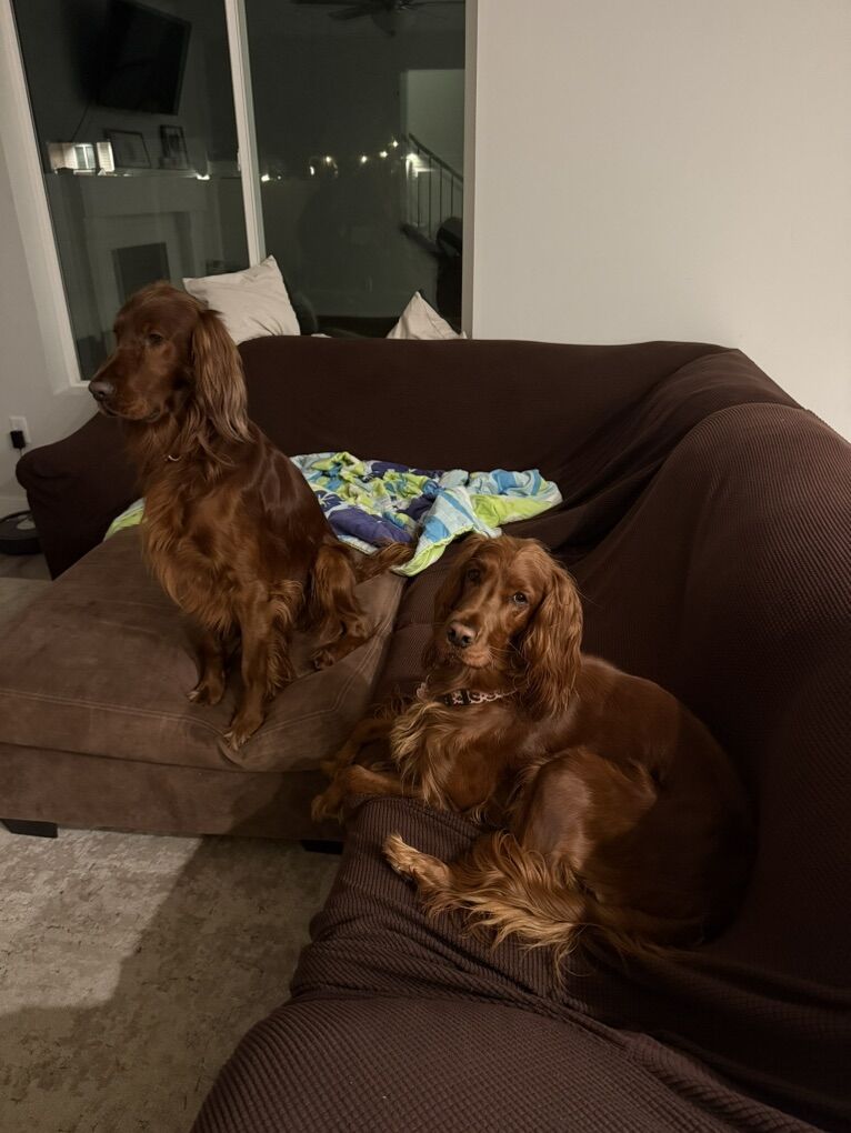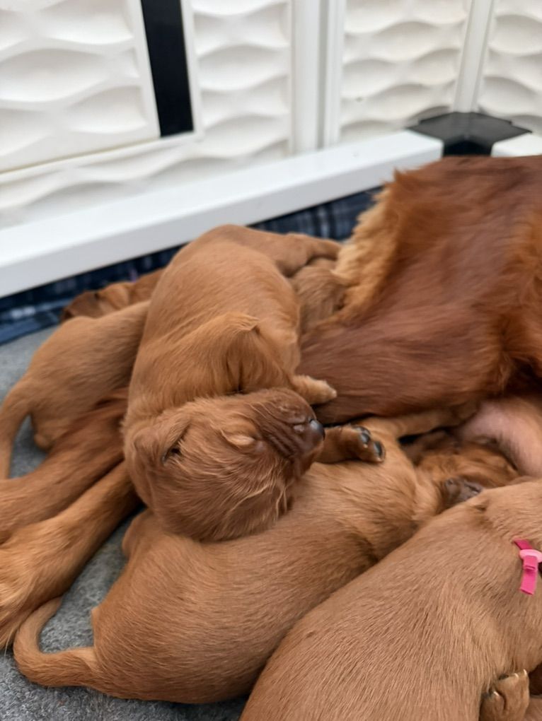 Irish Setters are amazing dogs known for their color, affection, and personalities. They are incredibly loyal, gentle with kids, highly social, and thrive as part of the family. If you’re looking for a dog that wants to be involved in everyday life then our pups are a wonderful choice! And they have less hair than double coated breeds!