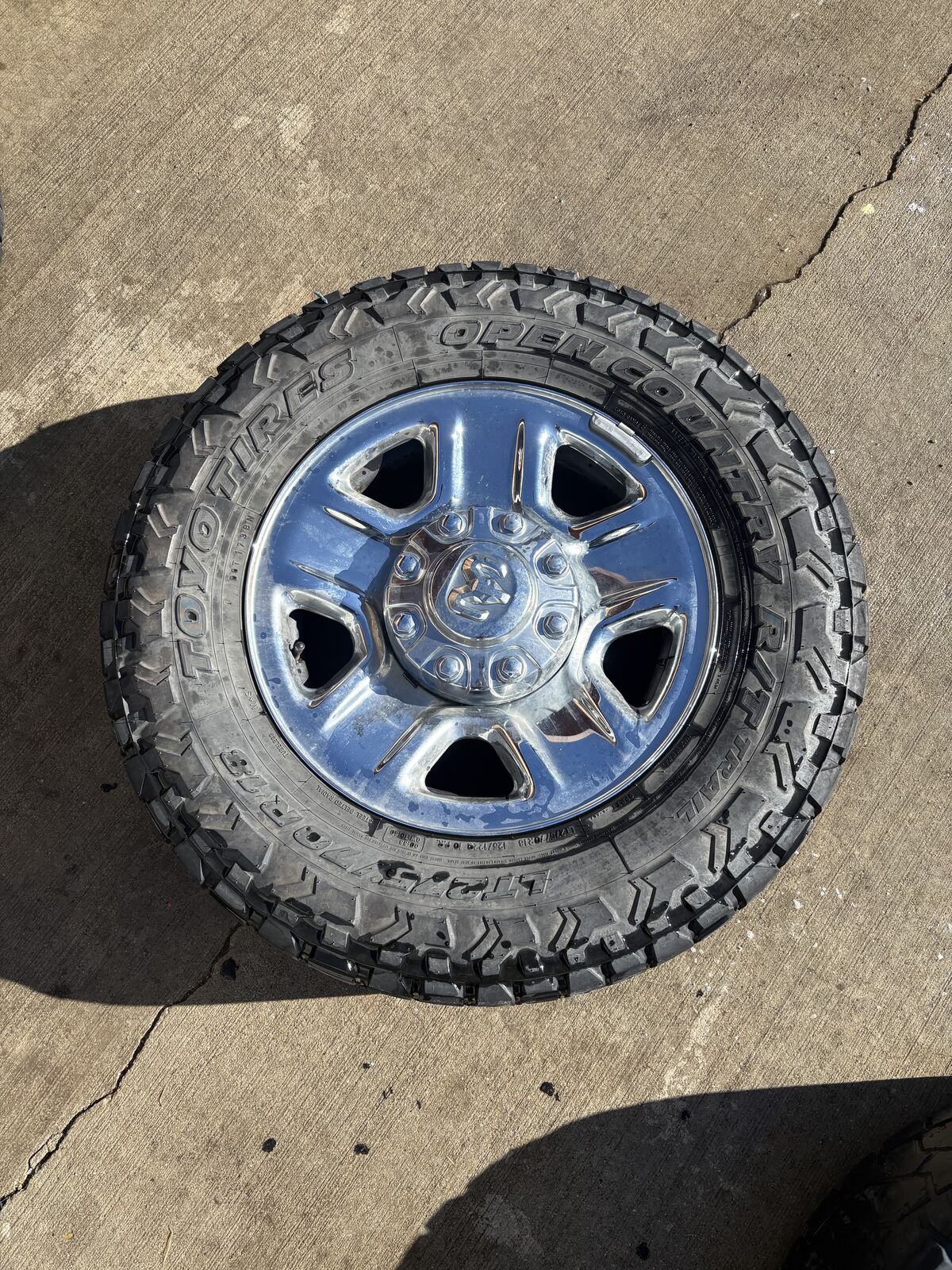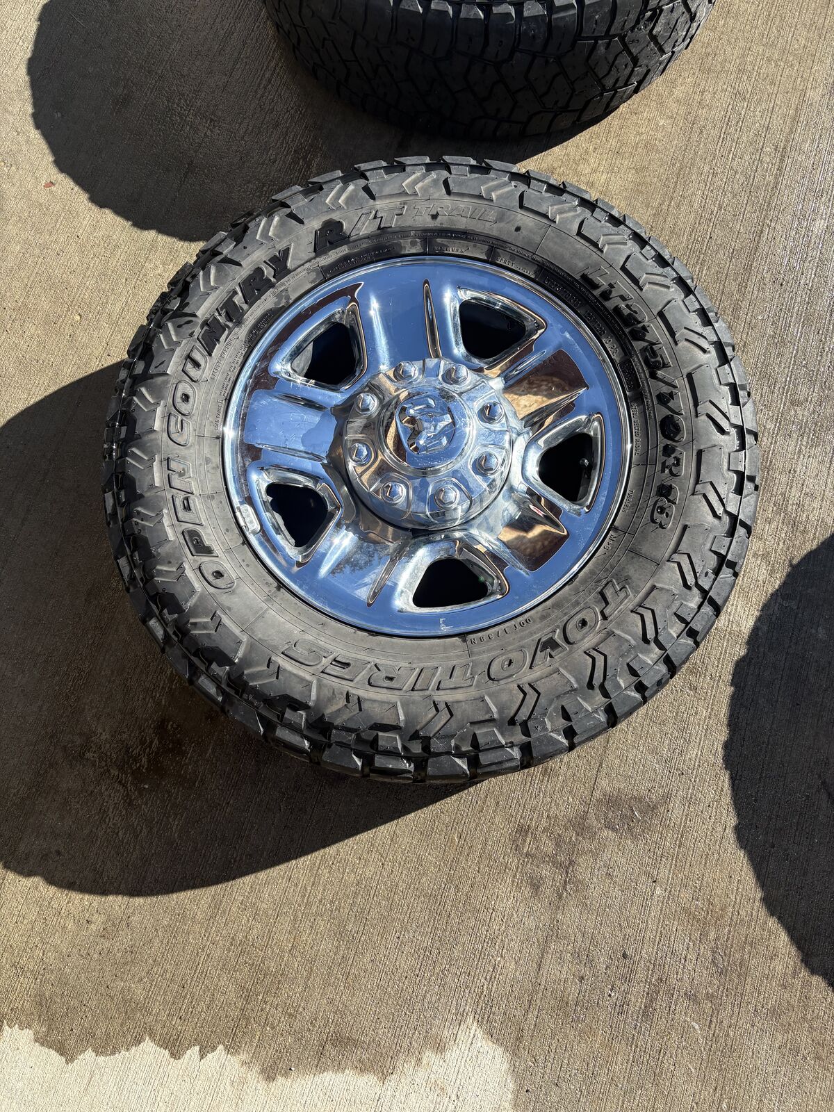 Got new tires and rims dont need the old ones. Brand new rims first set on the rims. Steel Rims. Were on a 2008 Dodge ram 2500 6.7L diesel. 8x6.5 bolt pattern.OBO.