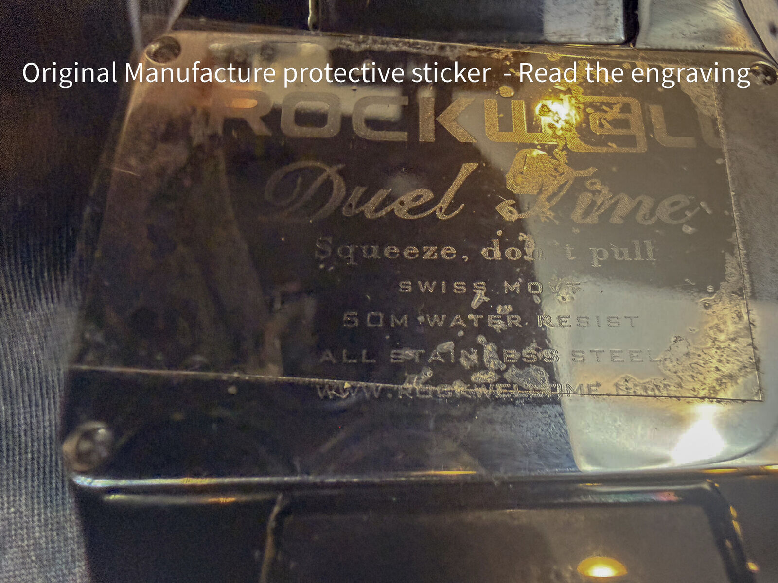 ZelleNEW IN BOX Rockwell DUEL TIME WRIST WATCH. COLOR: PHANTOM BLACK - Some of the photos make the watch and bracelet look stainless, but it is all black except the case back, which still has the protective sticker on it. Included: Original Rockwell box, pillow, and extra bracelet links. Still has the protective sticker on the caseback MSRP is $1,200.00 plus tax from Rockwell DESCRIPTION: One of Rockwell’s most luxurious, iconic and popular watches, the Duel Time exhibits strength and style in a way that is second to none. A generous 46mm case width and extra-fat 32mm band make every wrist that sports this watch pack a serious punch. Each Duel time also features a precision Quartz Swiss movement encased in a rectangular stainless steel frame. Every Duel Time also features a Continuum™ bracelet, which maintains a sleek continuity around the curvature of your wrist with a DuraFrame™ butterfly closure. SPECS: Case Size: 46mm Band Width: 32 mm Continuum™ /DuraFrame™ butterfly closure Materials: 316L Stainless Steel Ceramic Crystal: Sapphire-coated Hardened Mineral Crystal Water Resistance: 5 ATM Battery Type: Lithium Movement Specifications: Swiss-made Ronda Caliber 1069 Two-hand quartz movement with small second hand / One Jewel Condition: Unworn – bracelet still has full length with extra links. Factory protective sticker is still on the caseback (what looks like “wear” in photos is just the sticker). Fresh battery. Awesome statement piece if you like bold square watches.