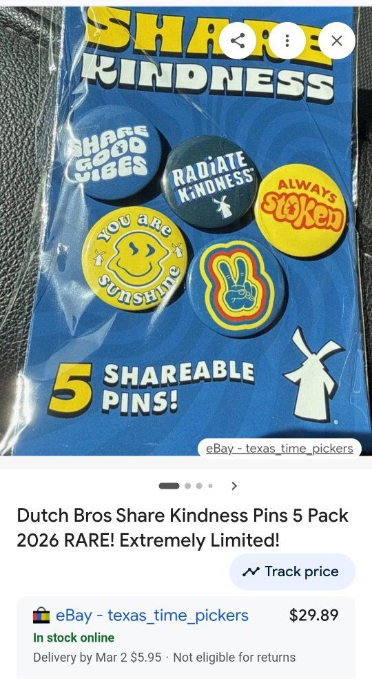rare extremely limited Dutch Bros share kindness 5 set pins 20.00 cash
