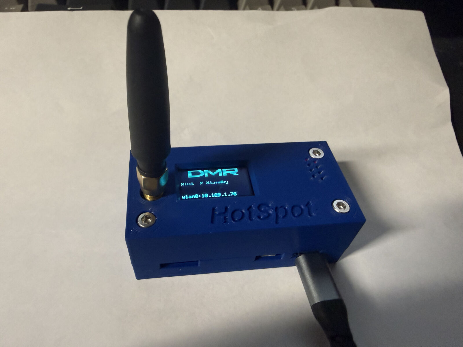 Works well, setup for DMR, it just needs your DMR ID, Brandmeister security password, callsign and wifi information.