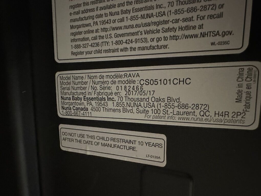 Manufacture date: 5/17/2017, good thru 5/17/2029