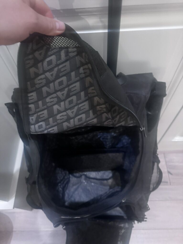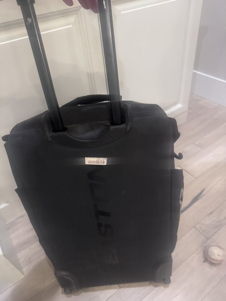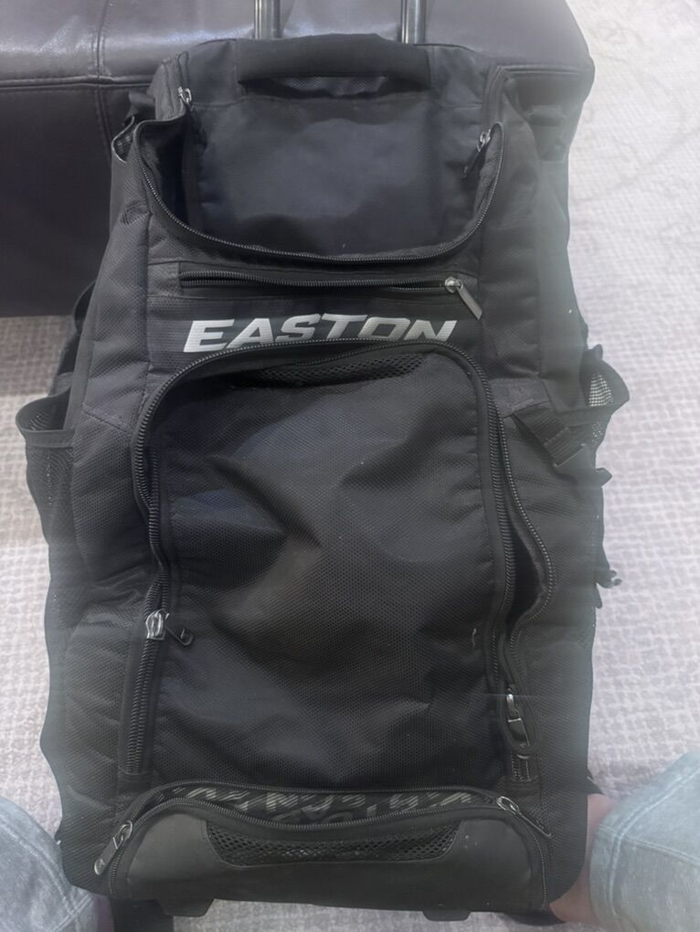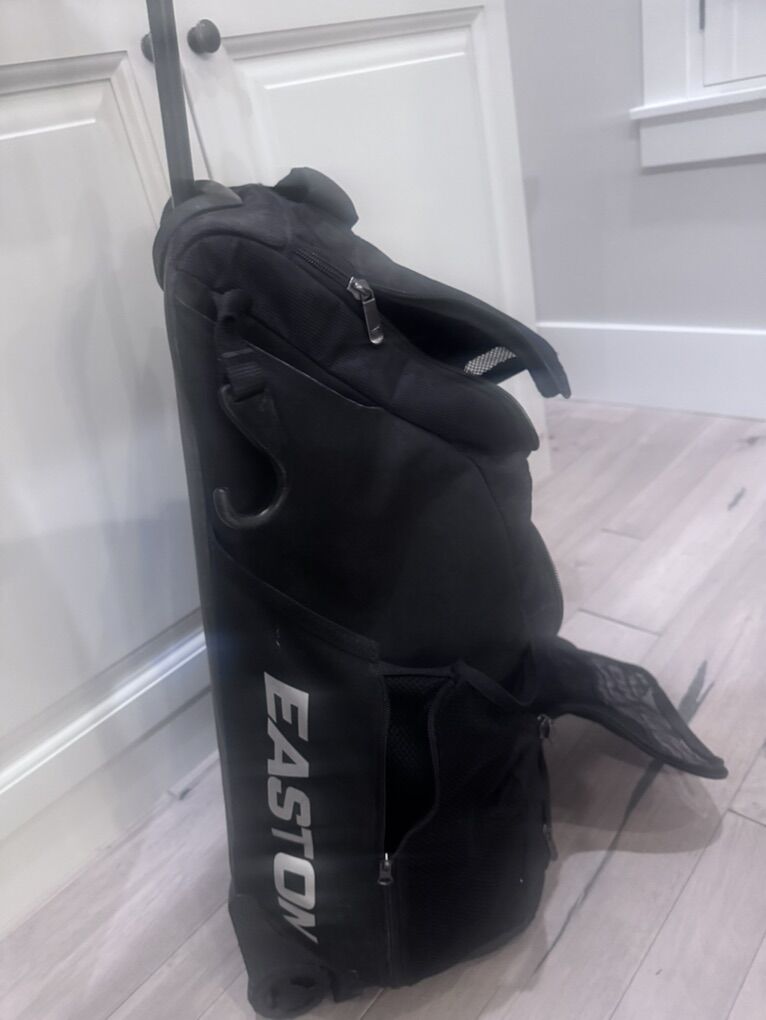 ApplePayLots of space Different pockets and compartments and places to put your gear, gloves, cleats etc. It rolls on wheels and has a telescoping handle to pull