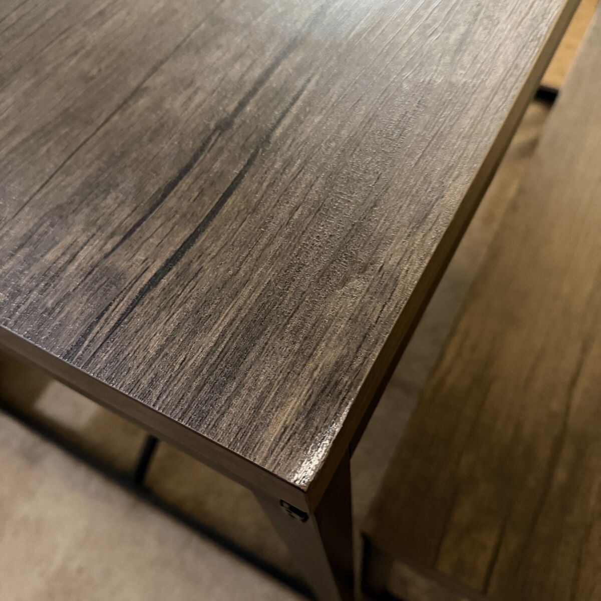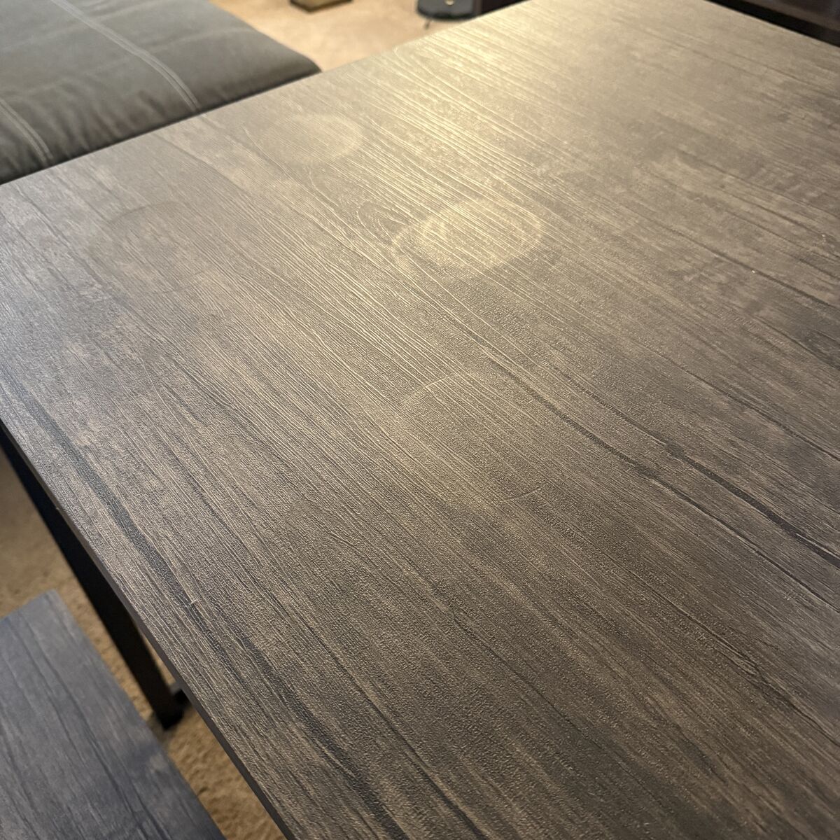 VenmoOverall fair condition. Has a few permanent marks when seen at the right angle (pictured). It’s not wood, it’s like a treated, textured laminate top table. It’s a dining table but can definitely be used as a games table or something. Not super fancy but stable and seats four.