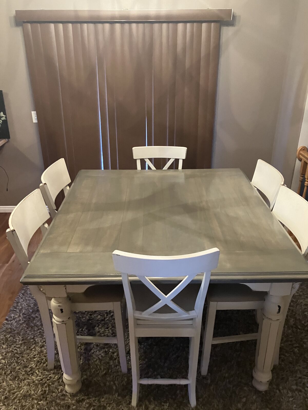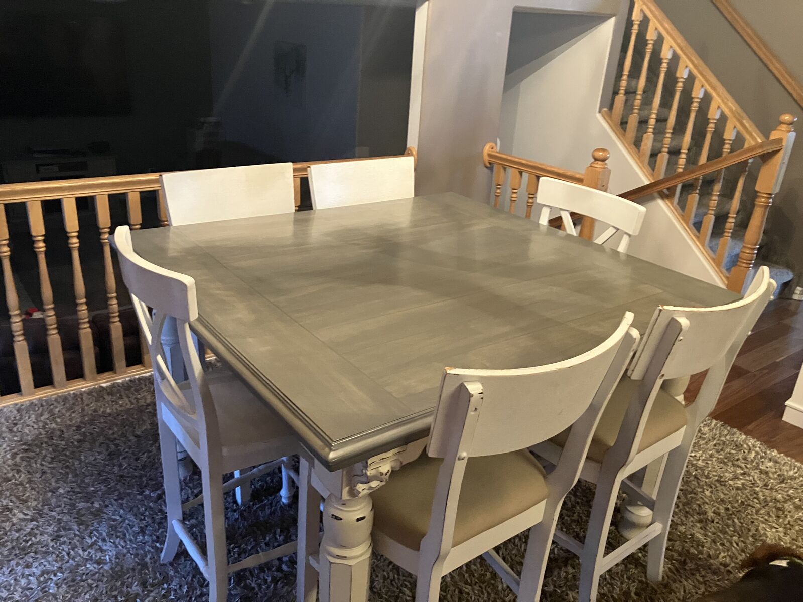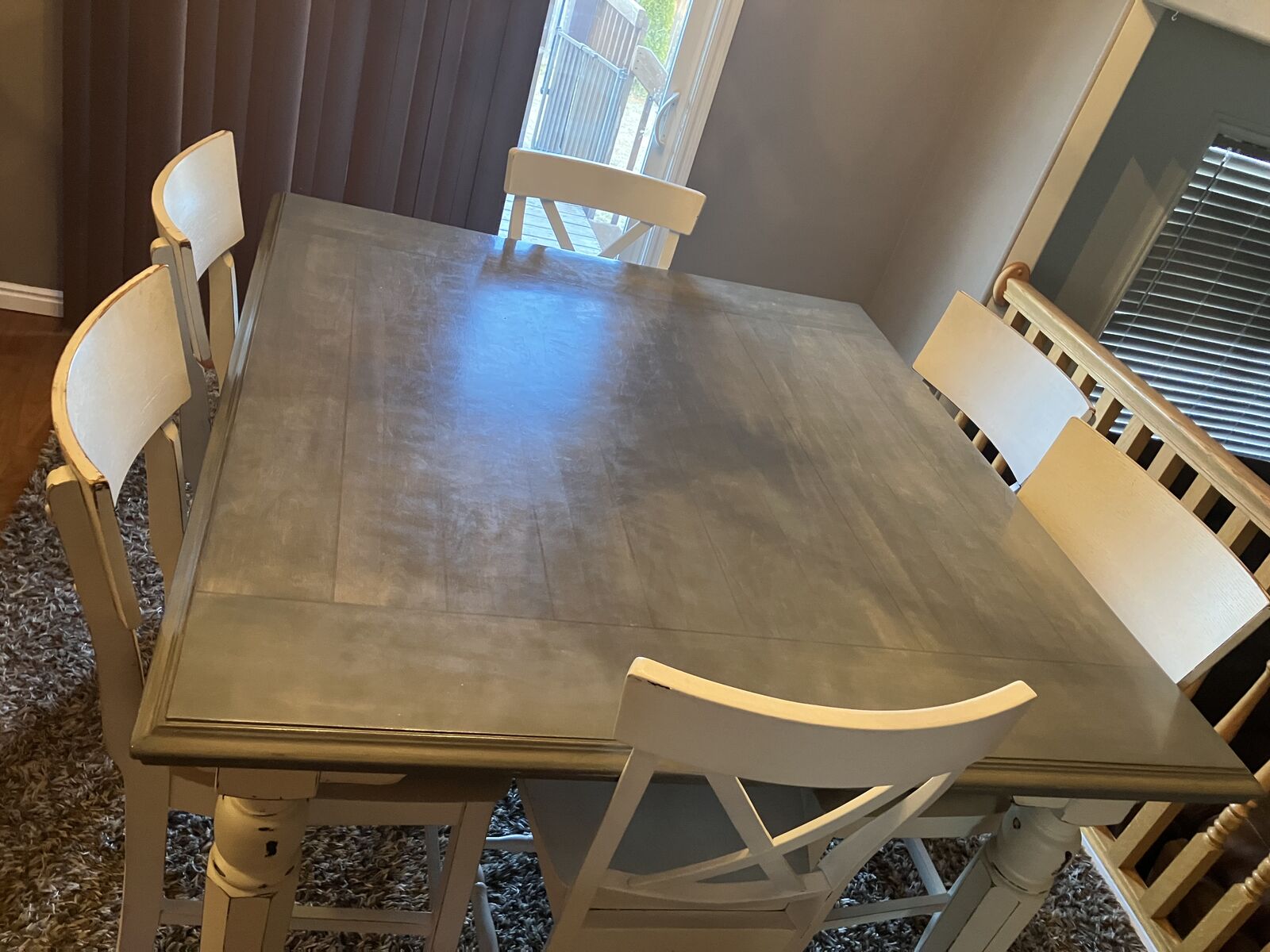 VenmoBeautiful solid wood counter-height dining table with 8 chairs total (6 pictured).
