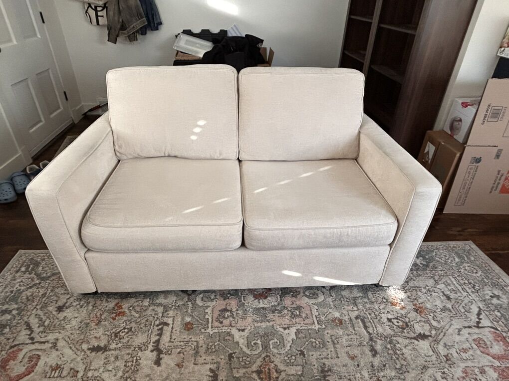 ApplePayMathers loveseat from Living Spaces. We’ve loved it but we’re moving. Really comfortable and perfect for smaller rooms.