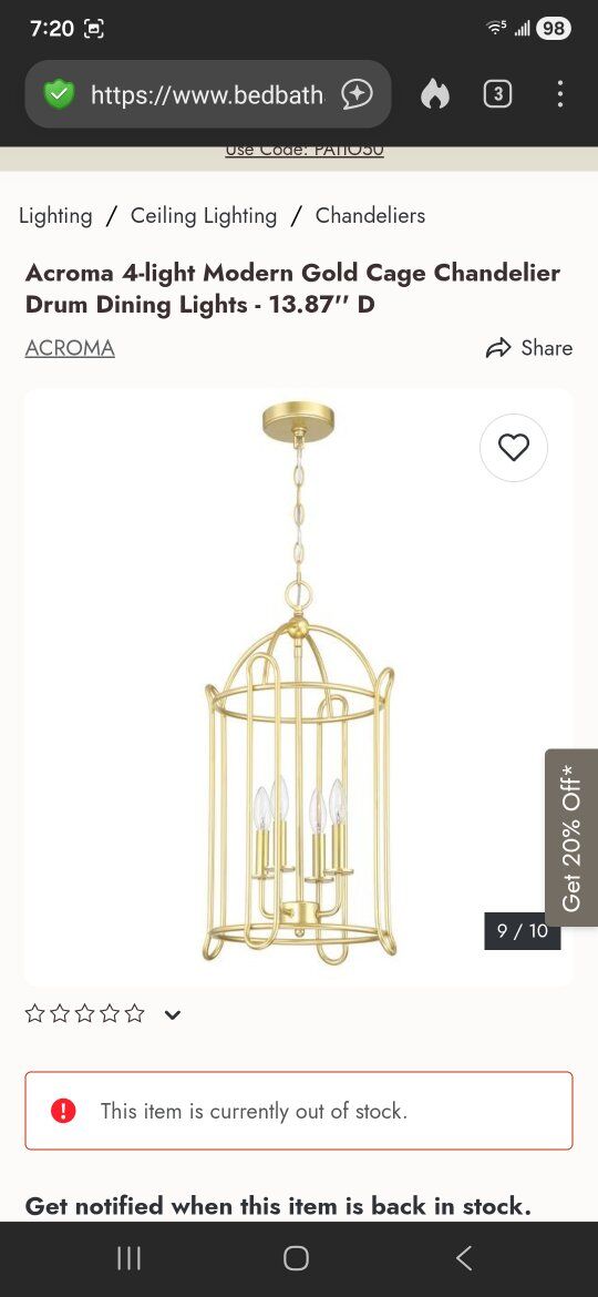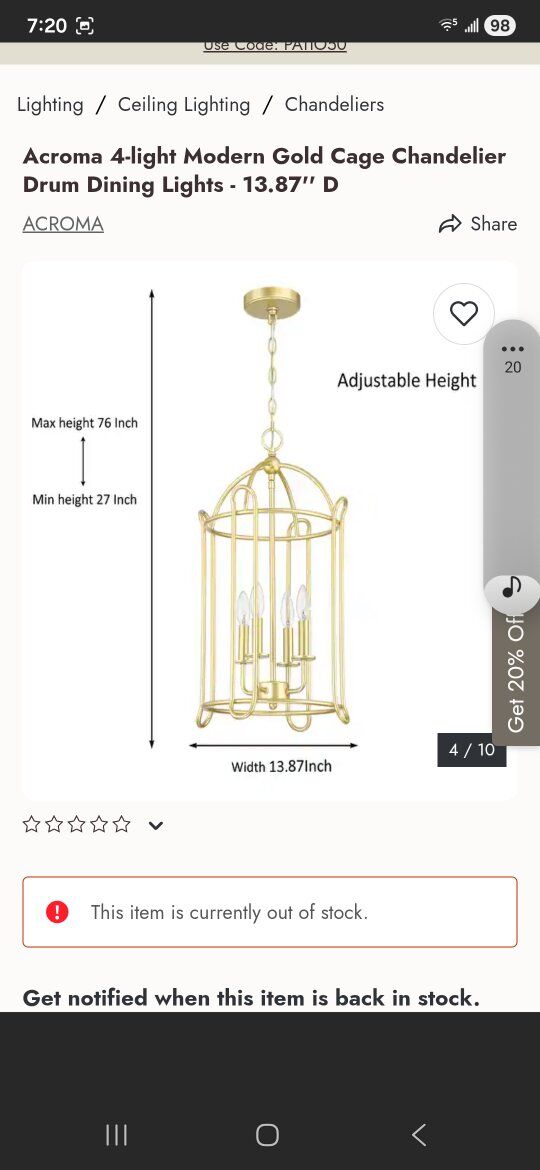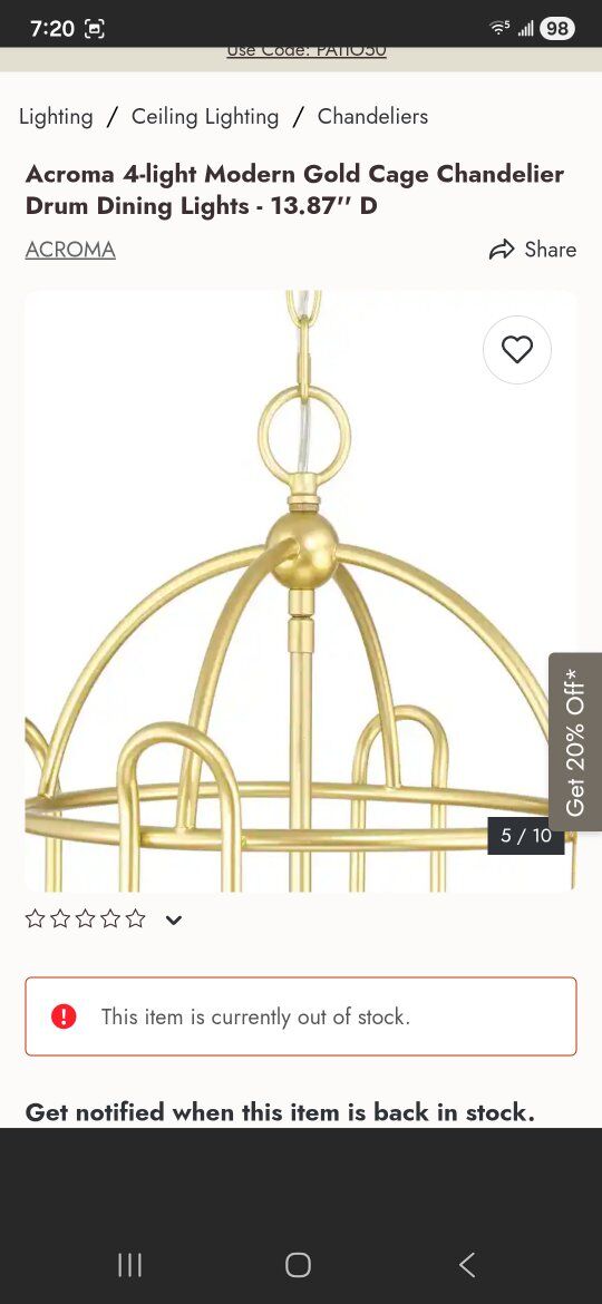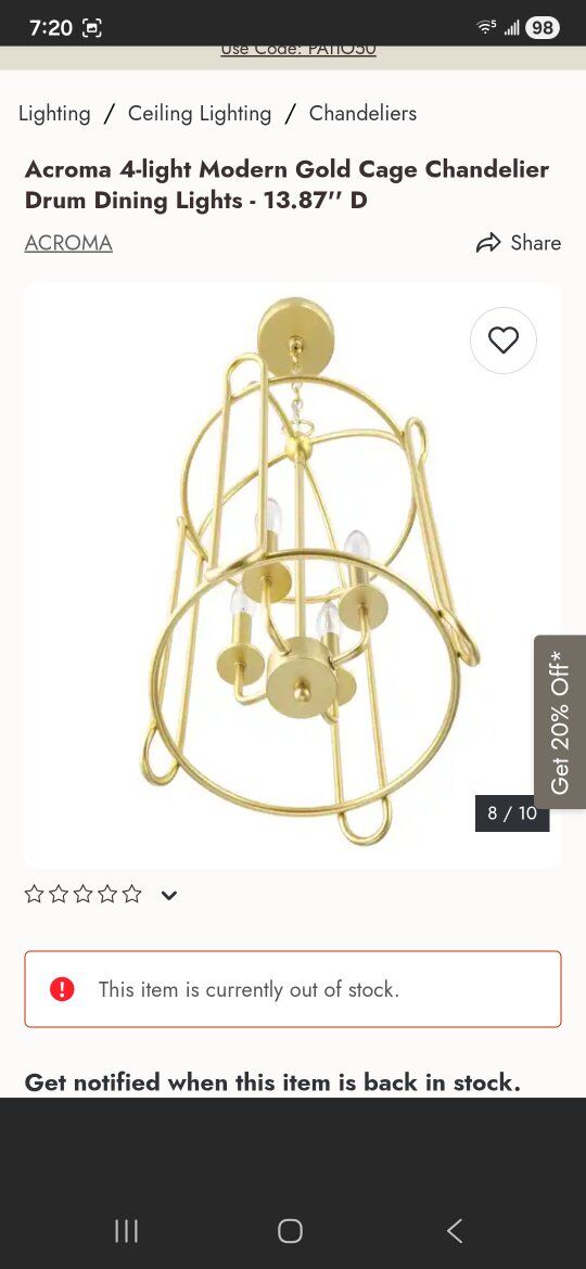 Acroma 4-light Modern Gold Cage Chandelier Drum Dining Lights - 13.87''