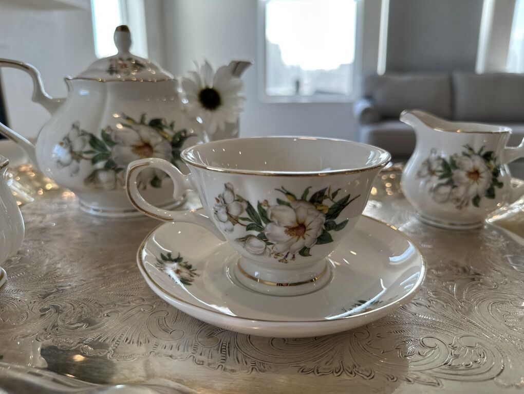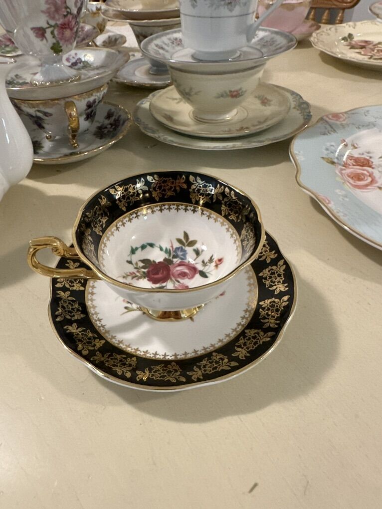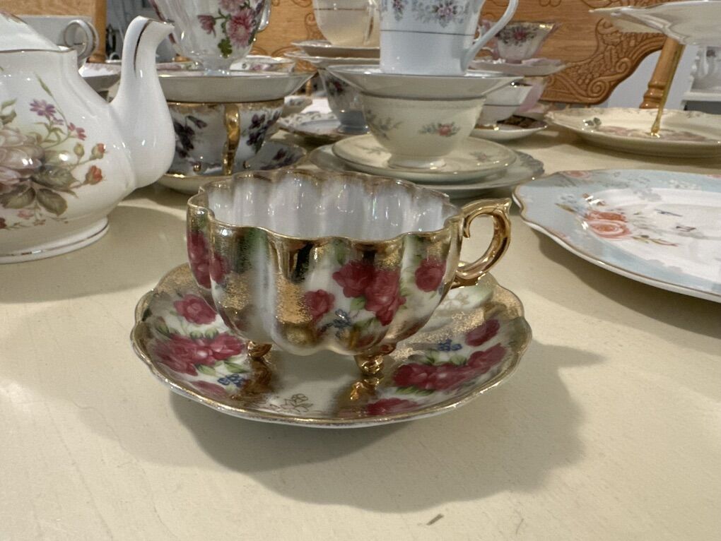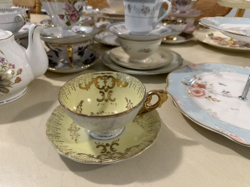 ZelleOver 200 unique teacups and saucers to choose from. Dozens of full sets. Tea parties are great for birthdays, bridal showers, baby showers, anniversaries, etiquette nights, Relief Society activities, Young Women's activities, mother's day, or any occasion you'd like. Additional upgrades include a huge variety of serving dishes, serving platers and tiered trays, silver platters, linen napkins, napkin rings, candle stick holders, candelabras, a huge variety of antique decor, teapots, tea carts, doilies, and brooches.
